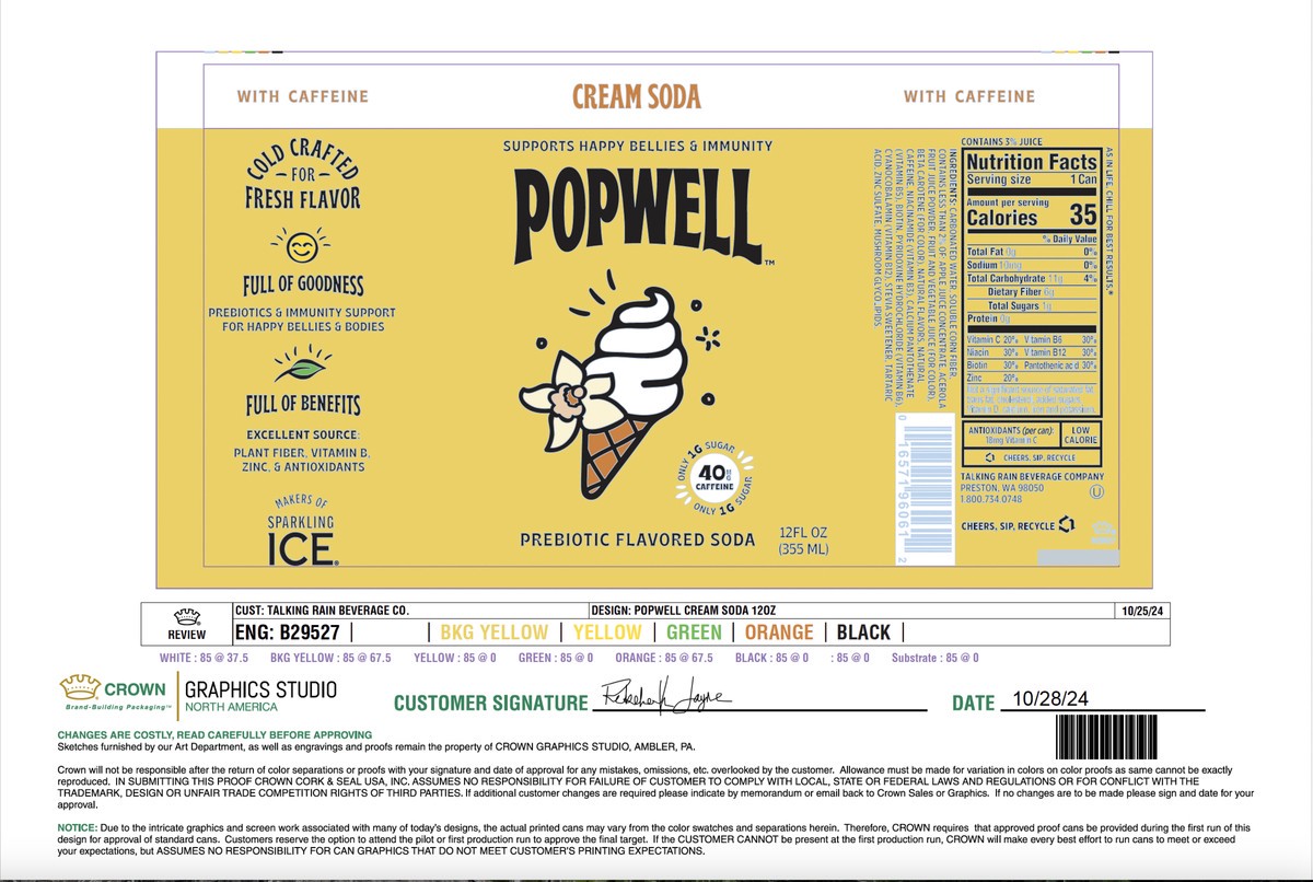 Popwell Cream Soda Caffeinated Soda 12 oz Can