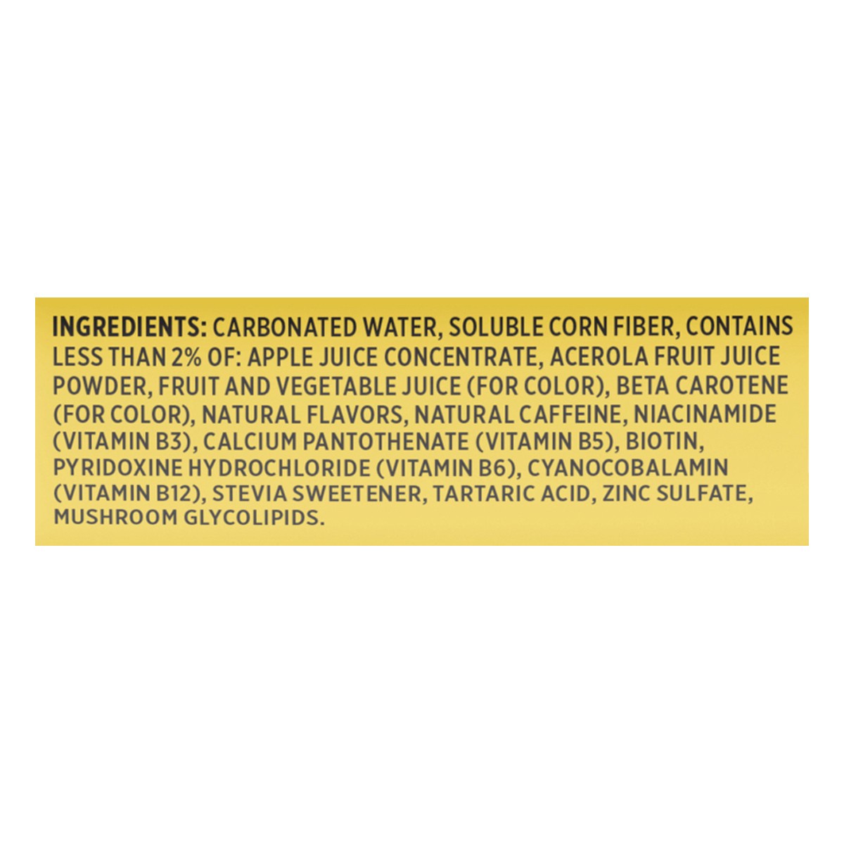 Carbonated water, Soluble Corn Fiber, Contains 2% or less of: Cherry Juice Concentrate, Acerola Fruit Juice Powder, Fruit and Vegetable Juice (for color), Beta Carotene (for color), Natural Flavors, N…