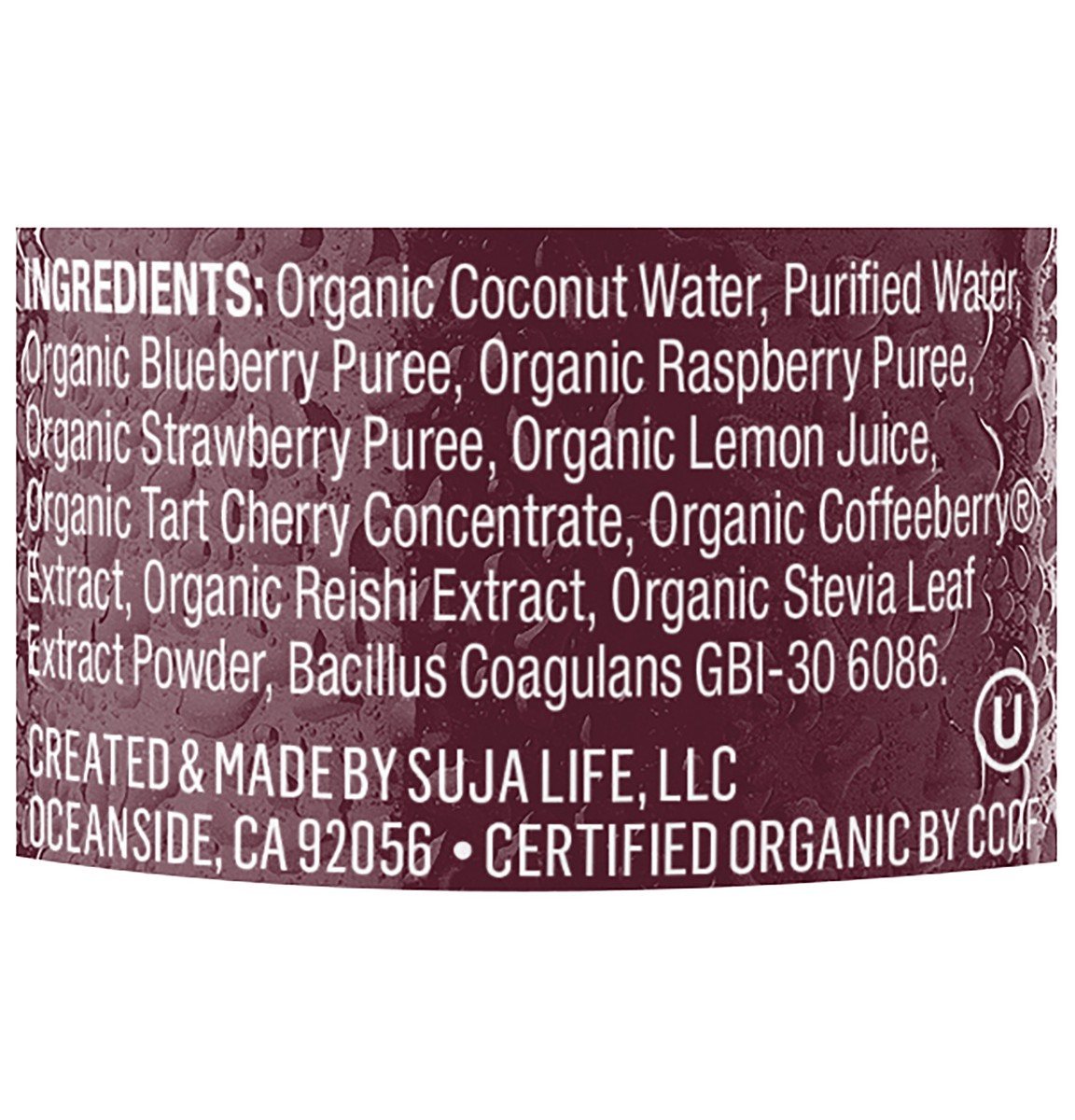 Organic Coconut Water, Purified Water, Organic Blueberry Puree, Organic Tart Cherry Juice, Organic Raspberry Puree, Organic Strawberry Puree, Organic Lemon Juice, Organic Coffeeberry Extract, Organic …