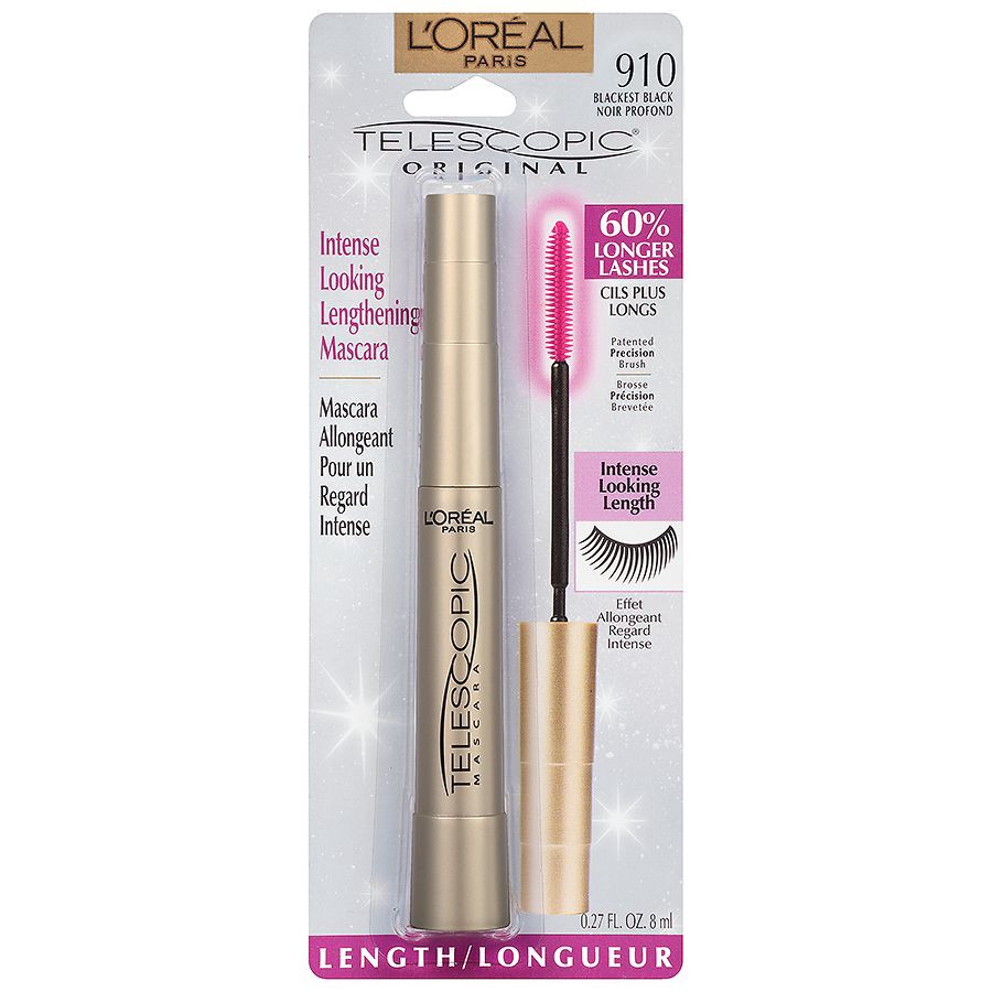 L'Oreal Paris' Iconic Telescopic Original Washable Mascara delivers extreme length and ultimate definition for up to 70% longer lashes and up to 24 HR wear. The specially designed Precision Brush catc…