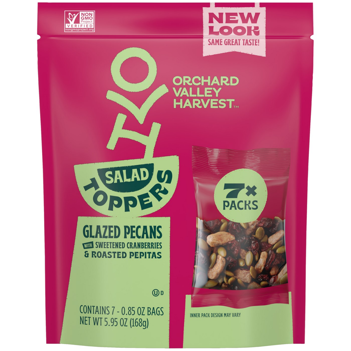 The next thing to picking nuts or fruit from an orchard is the Orchard Valley Harvest Salad Toppers, Gluten Free, Glazed Pecans with Sweetened Cranberries & Roasted Pepitas. A delicious pairing of swe…