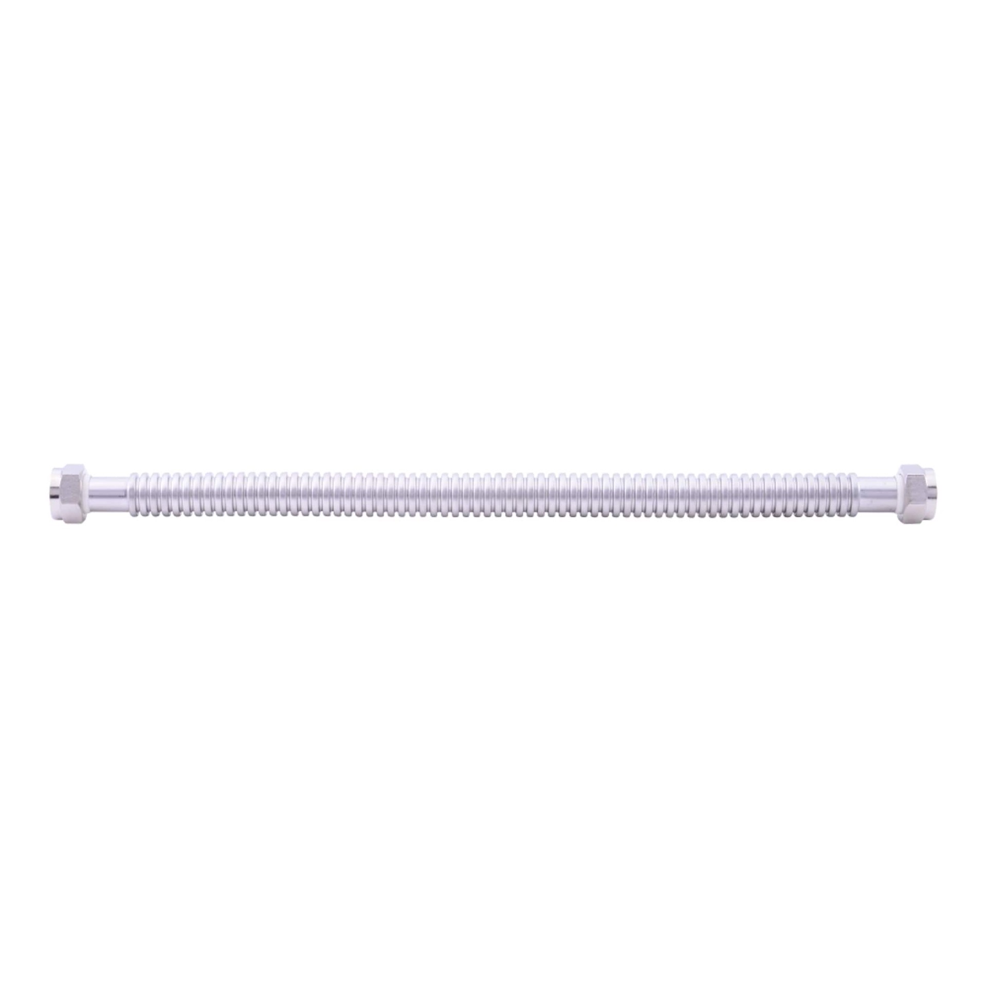 Made with a 304 stainless steel corrugated tube for superior strength, flexibility, and corrosion resistance.. Equipped with nickel-plated brass nuts and NBR rubber sealing washers for a secure and le…