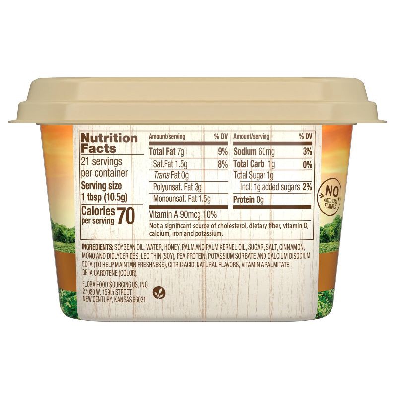 SOYBEAN OIL, WATER, HONEY, PALM AND PALM KERNEL OIL, SUGAR, SALT, CINNAMON, MONO AND DIGLYCERIDES, LECITHIN (SOY), PEA PROTEIN, POTASSIUM SORBATE AND CALCIUM DISODIUM EDTA (TO HELP MAINTAIN FRESHNESS)…