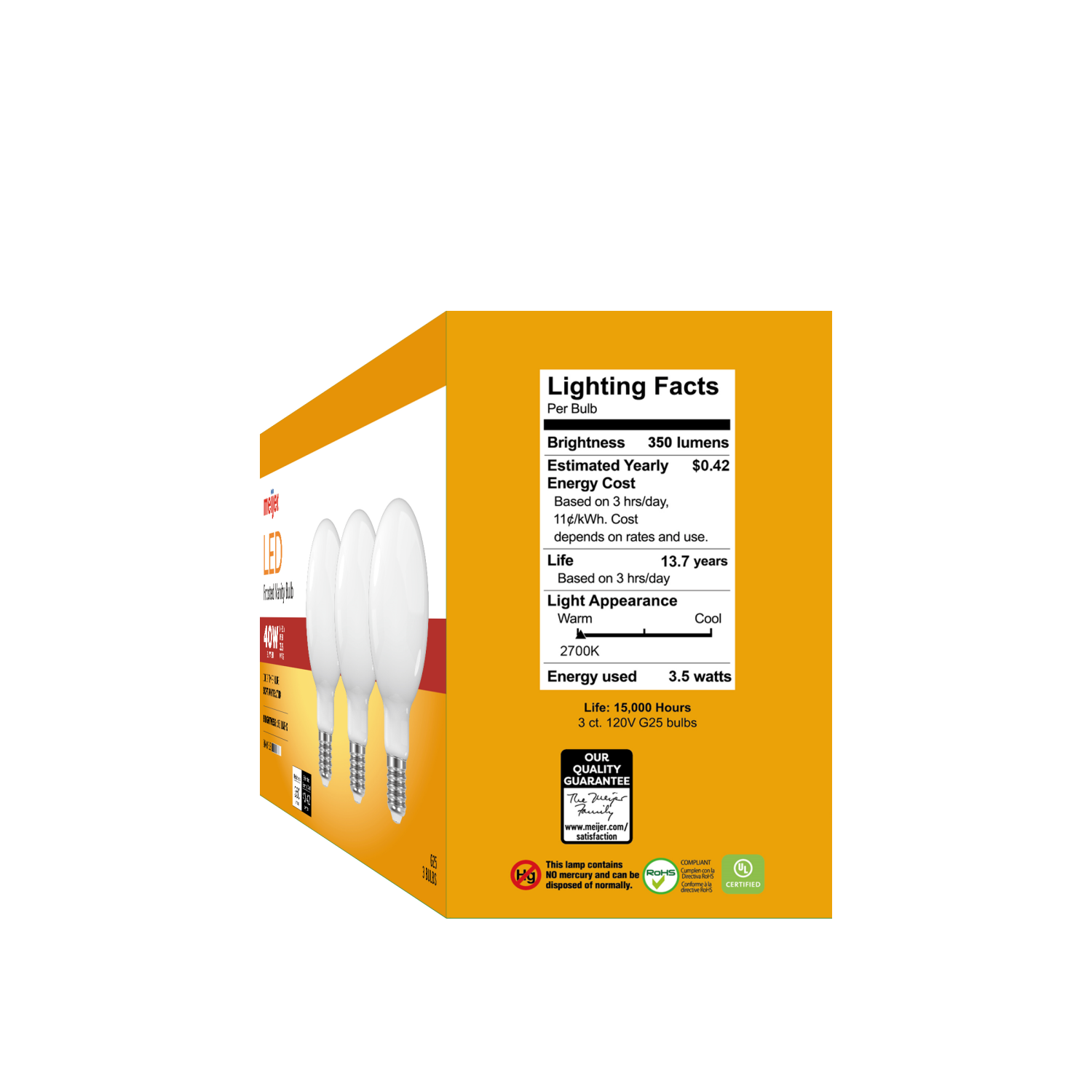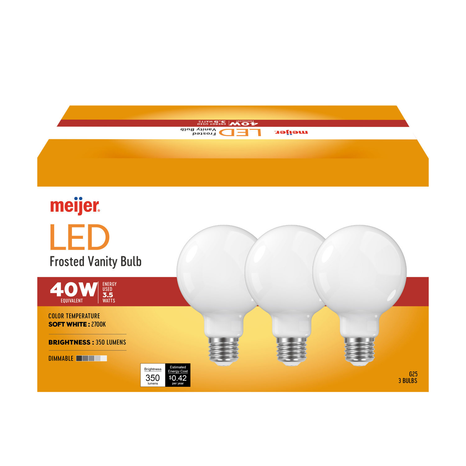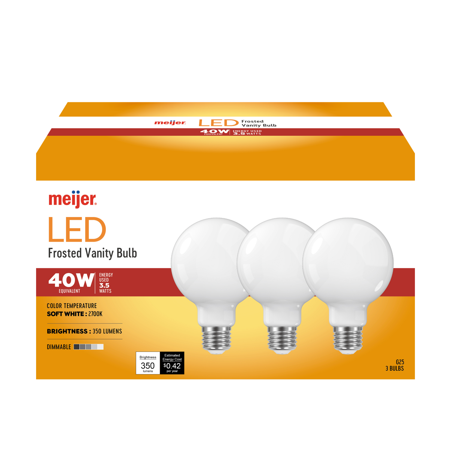 Meijer 40w Equivalent G25 Dimmable Frosted Glass Filament Led Light Bulb, 3 Ct
