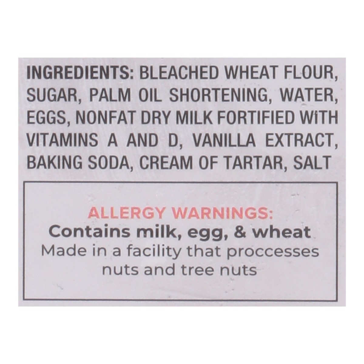 Bleached Wheat Flour, Sugar, Palm Oil Shortening, Water, Eggs, Nonfat Dry Milk Fortified with Vitamins A and D, Vanilla Extract, Baking Soda, Cream of Tartar, Salt.