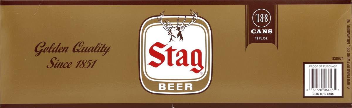 Stag Beer 18 Pack, 12-oz cans American-Style Lager - Gold Medal 2005 GABF. Stag is the beer for those that take life by the horns. Brewed under special conditions that enhance malt's natural flavor, S…
