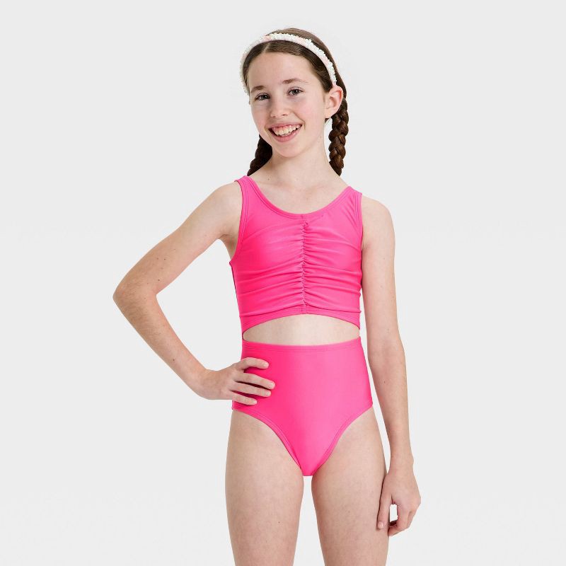 Girls' Front Cut One Piece Swimsuit - Cat & Jack™ Pink XS