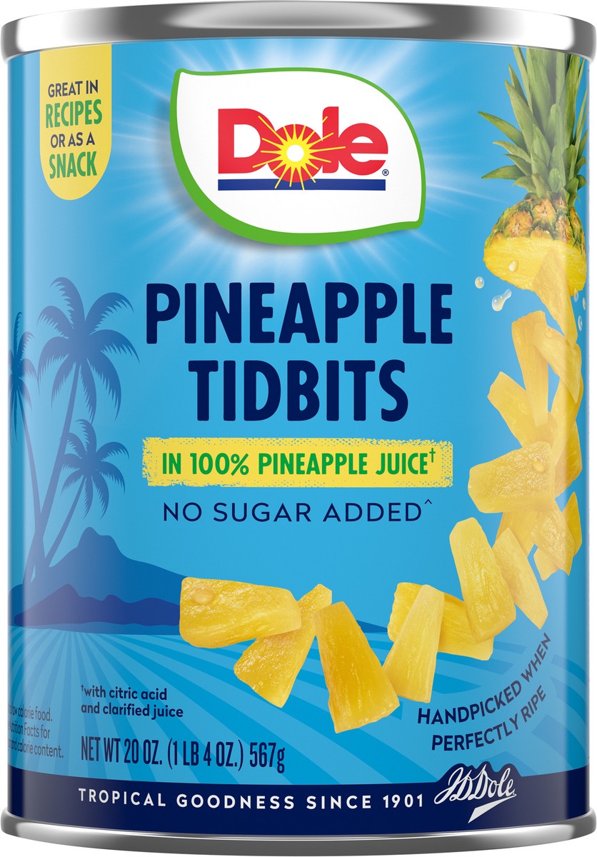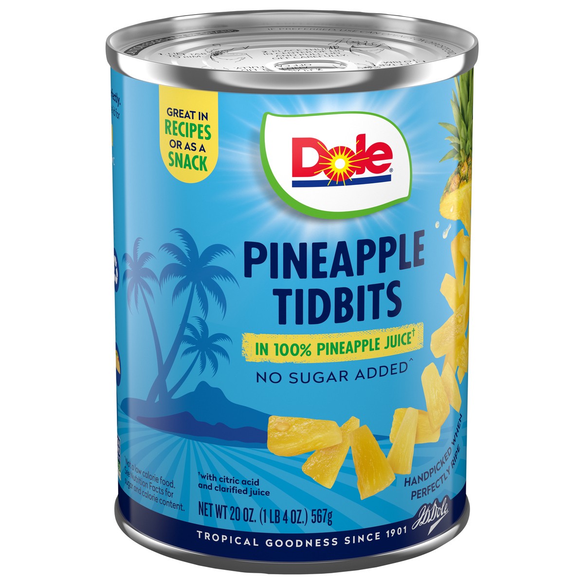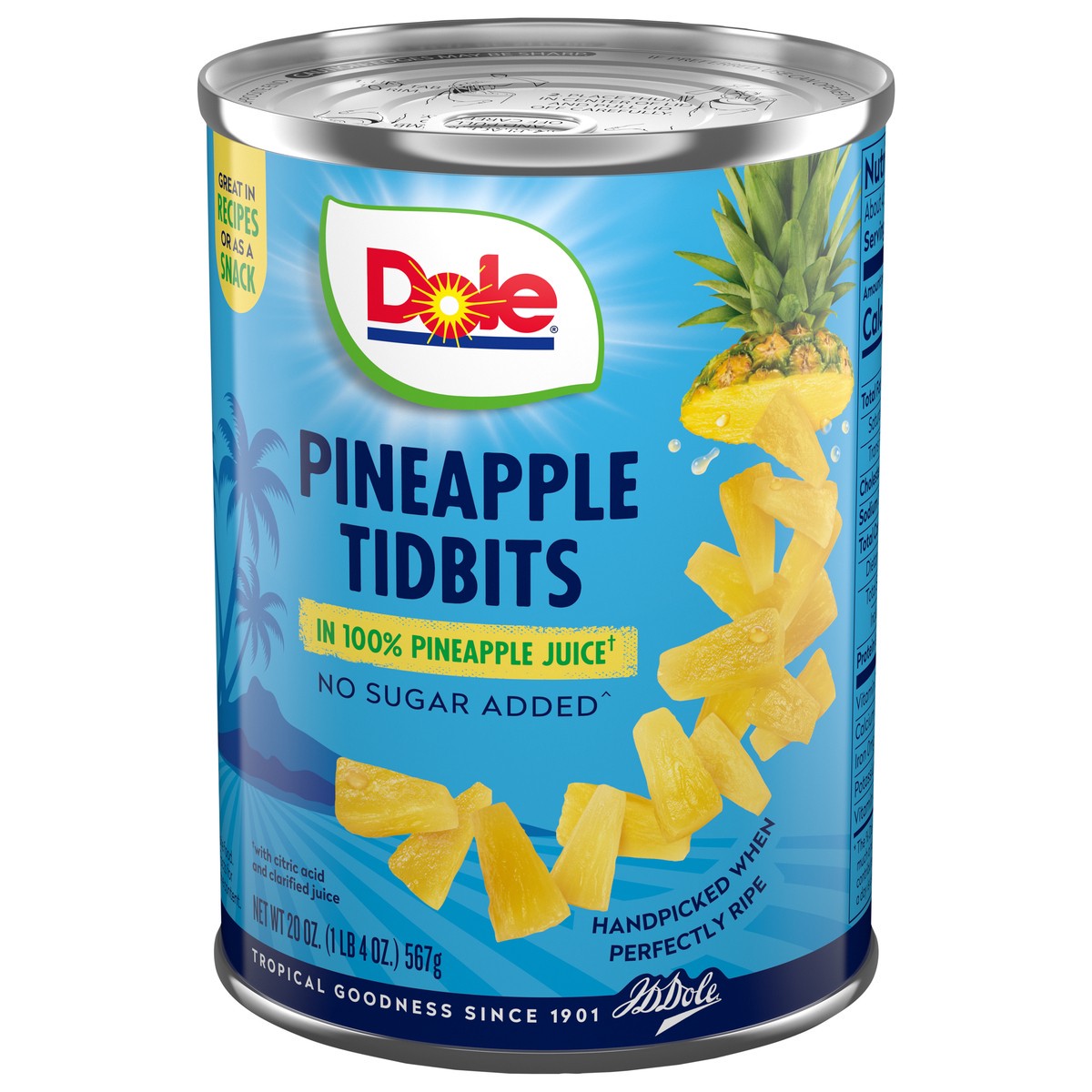 - Dole Pineapple Tidbits in 100% Pineapple Juice are filled with all the deliciousness you find in whole pineapple, and there is no added sugar
