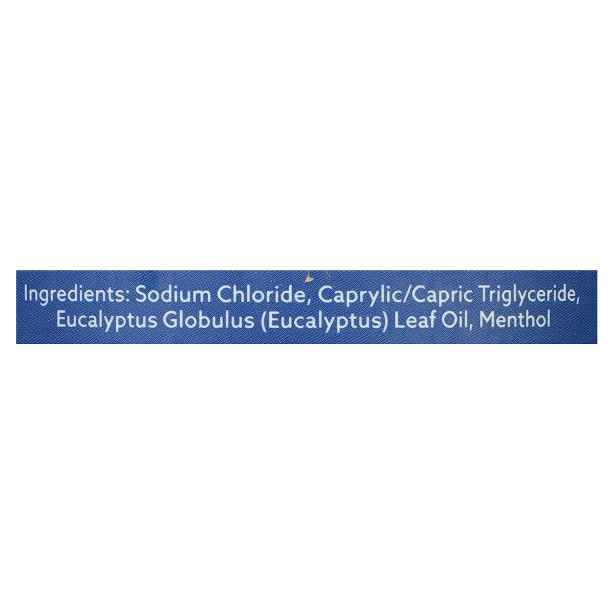 Sodium Chloride, Caprylic/Capric Triglyceride, Eucalyptus Globulus (Eucalyptus) Leaf Oil, Menthol.