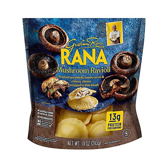 Giovanni Rana's mushroom ravioli is made with mushrooms and creamy cheeses wrapped in thin pasta. Using high quality ingredients and no preservatives, no powdered eggs, no gums, no hydrogenated fats, …