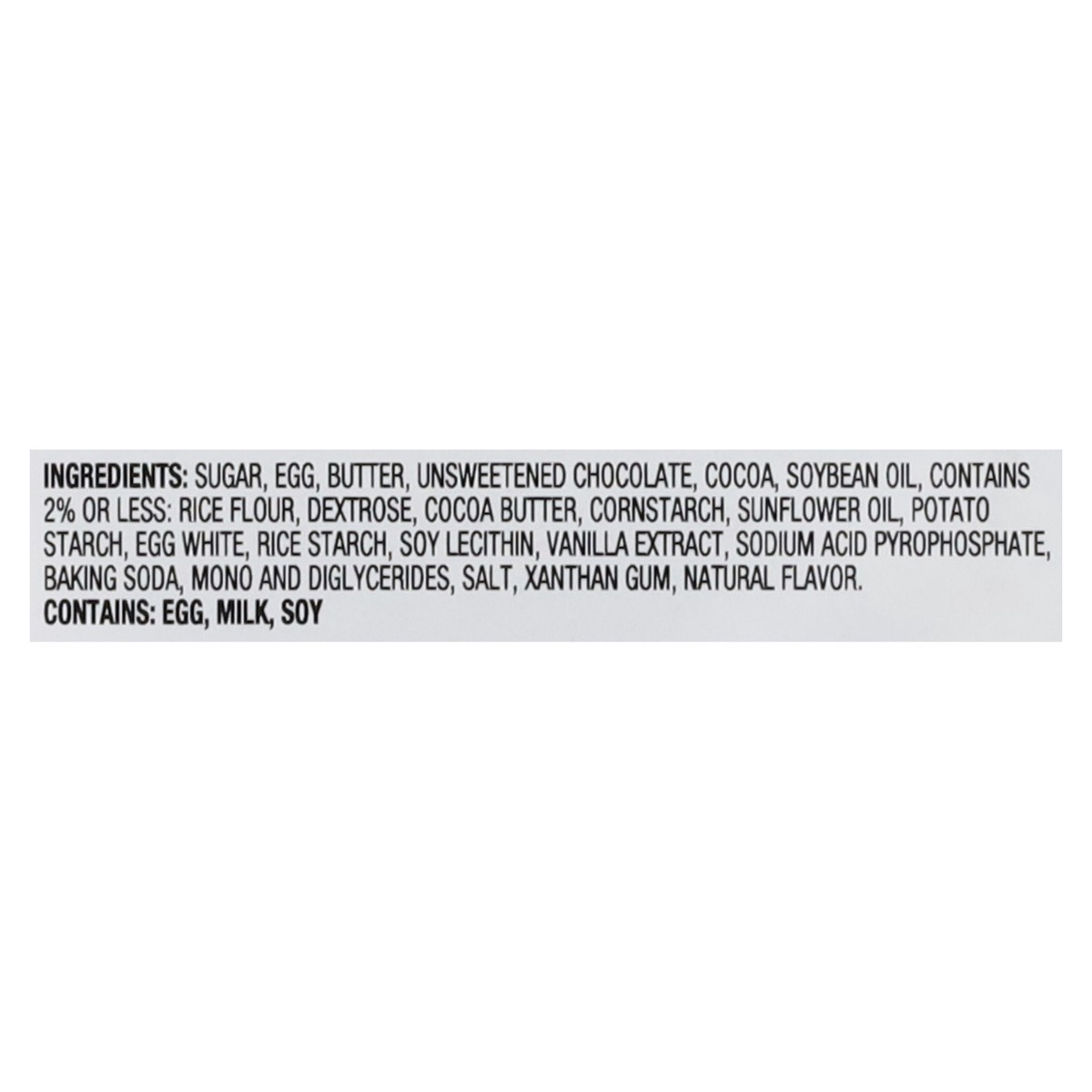 Sugar, Egg, Butter, Unsweetened Chocolate, Cocoa, Soybean Oil, Contains 2% or Less: Rice Flour, Dextrose, Cocoa Butter, Cornstarch, Sunflower Oil, Potato Starch, Egg White, Rice Starch, Soy Lecithin, …
