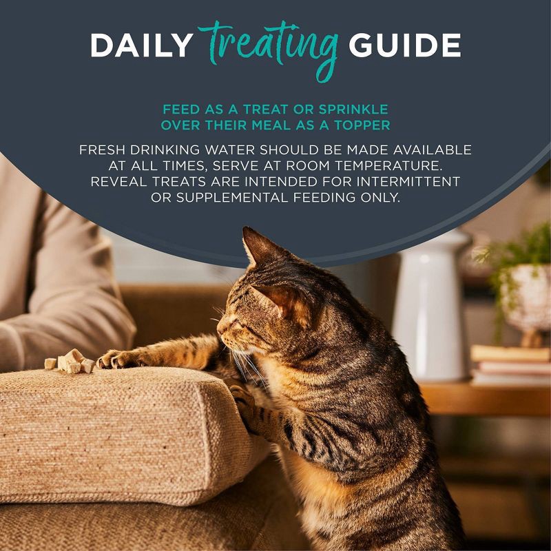 - More Real Protein: Reward your cat with the high-quality protein they deserve. Packed with real protein, like premium fish or poultry, Reveal Cat Treats offer a simple and naturally delicious snack. These protein-rich treats support your cat's cravings while satisfying their taste buds.