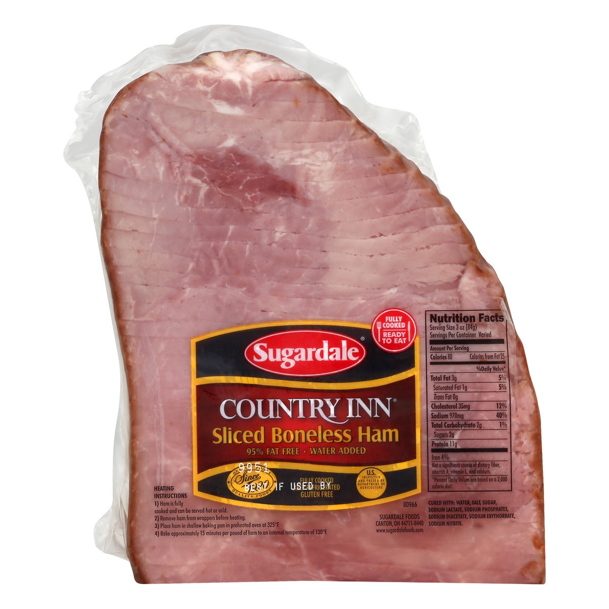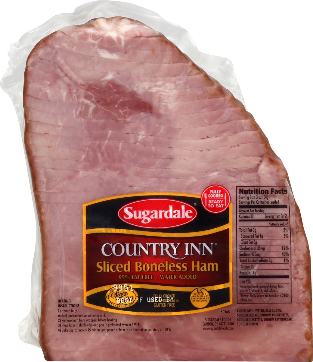 Gluten Free. 95% fat free. Fully cooked. Ready to eat. Water added. Quality foods since 1920. Thank you for shopping at Giant Eagle! US inspected and passed by Department of Agriculture. www.sugardale…