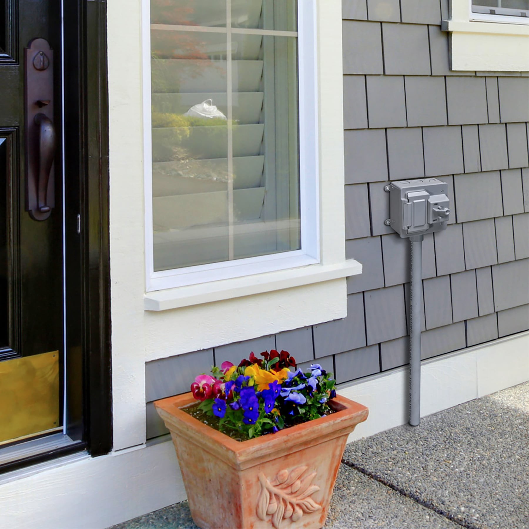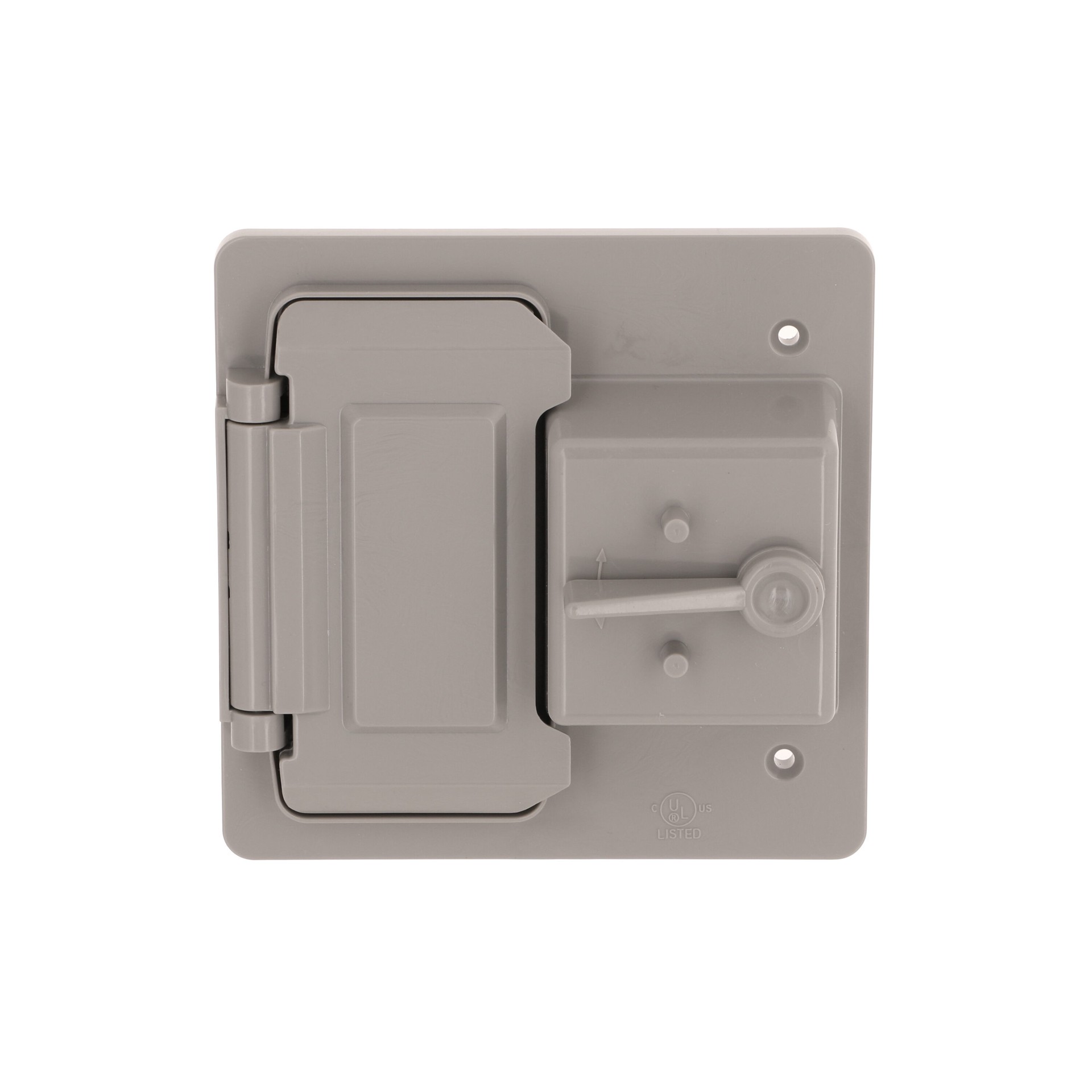 Durable high-impact polycarbonate construction. Horseshoe adapter ensures a snug fit for small and large head switches. Vertical mount. Gray finish. NEMA 3R rated. cULus Listed.
