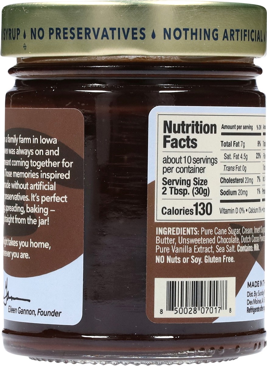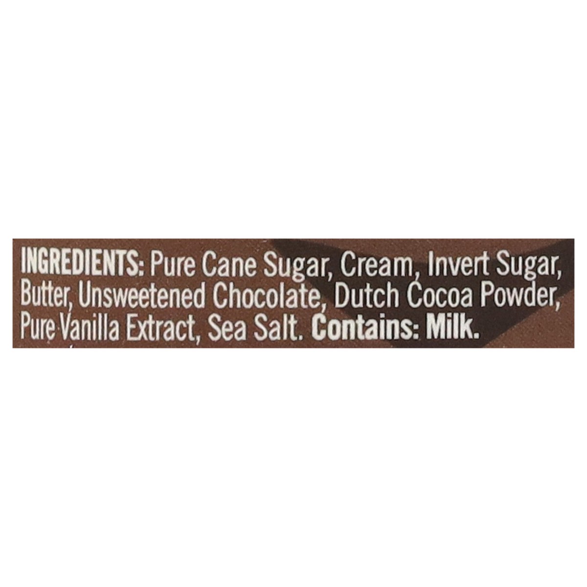 Pure Cane Sugar, Cream, Invert Sugar Syrup, Butter, Unsweetened Chocolate, Dutch Cocoa Powder, Pure Vanilla Extract, Sea Salt, Natural Flavor.
