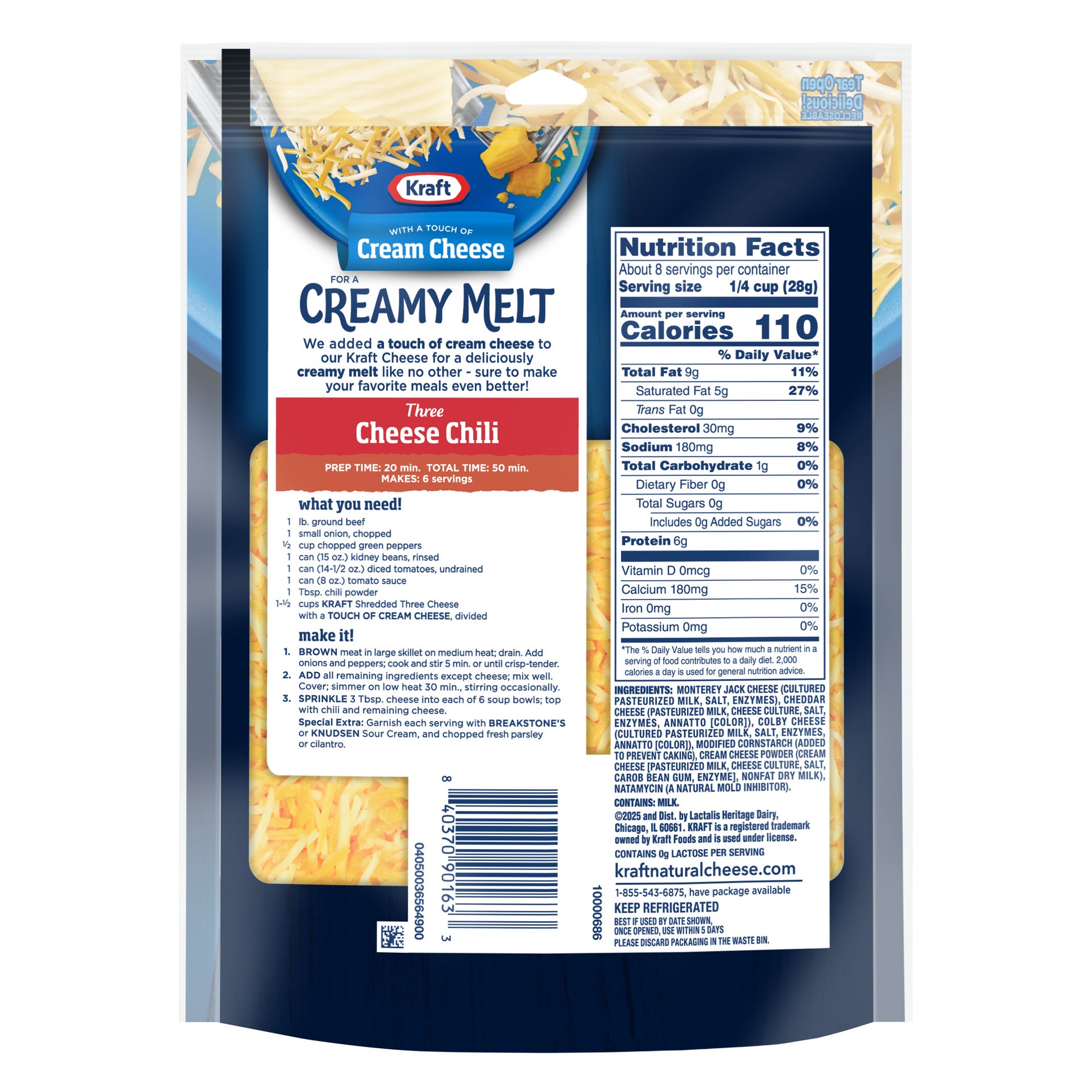 - Kraft Creamy Melt Shredded Three Cheese Blend With a Touch of Cream Cheese backed by years of cheese experience