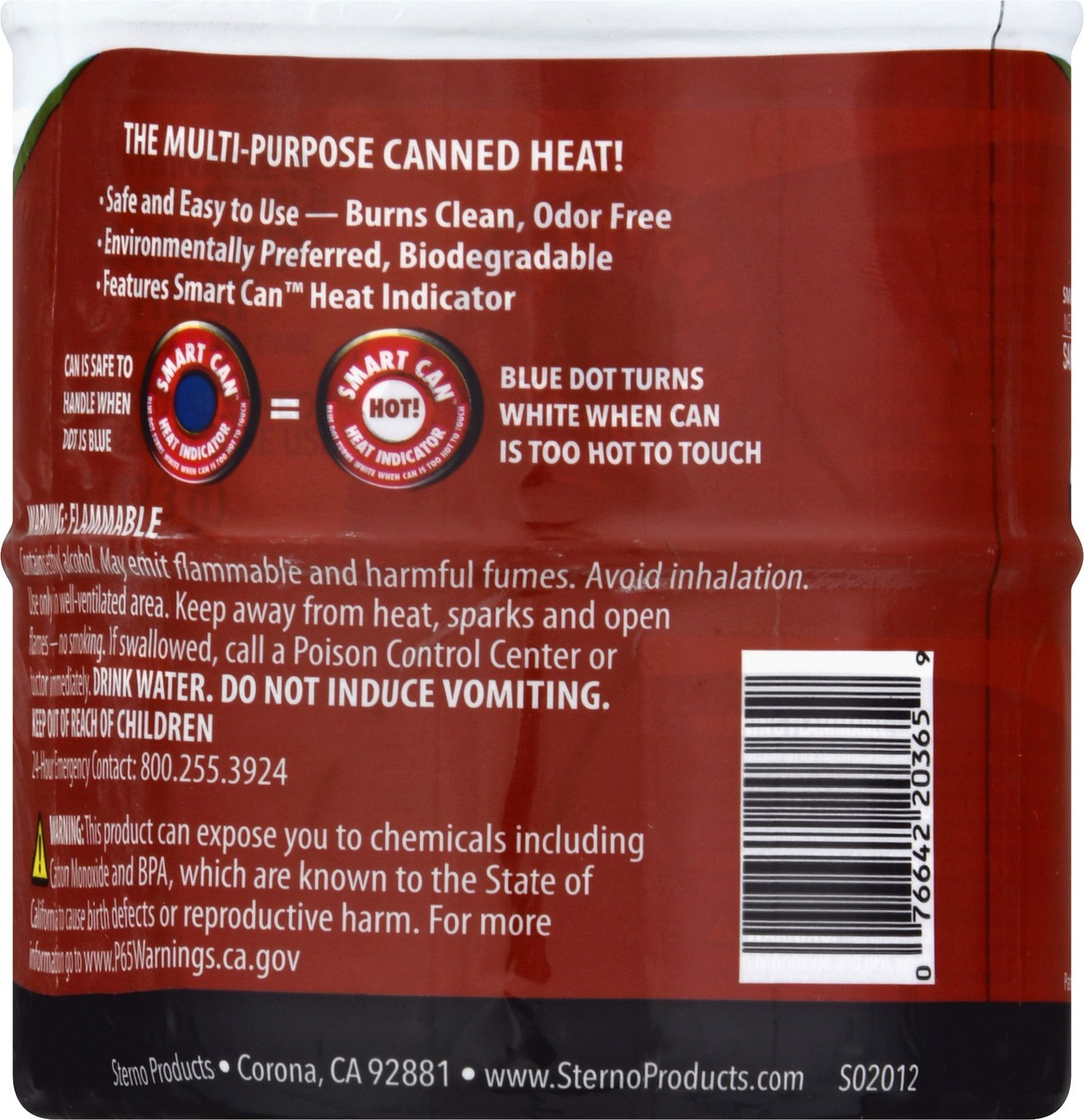 4.5 hr total burn time. The Multi-Purpose Canned Heat!: Safe and easy to use - Burns clean, odor free; environmentally preferred, biodegradable; features Smart Can Heat Indicator. Can is safe to handl…