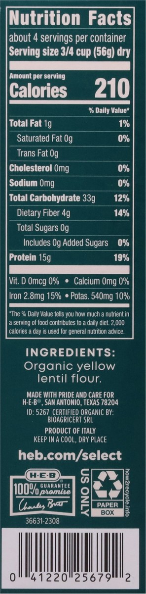 Higher Harvest by H-E-B Gluten Free Organic 15g Protein Yellow Lentil Penne Pasta Noodles