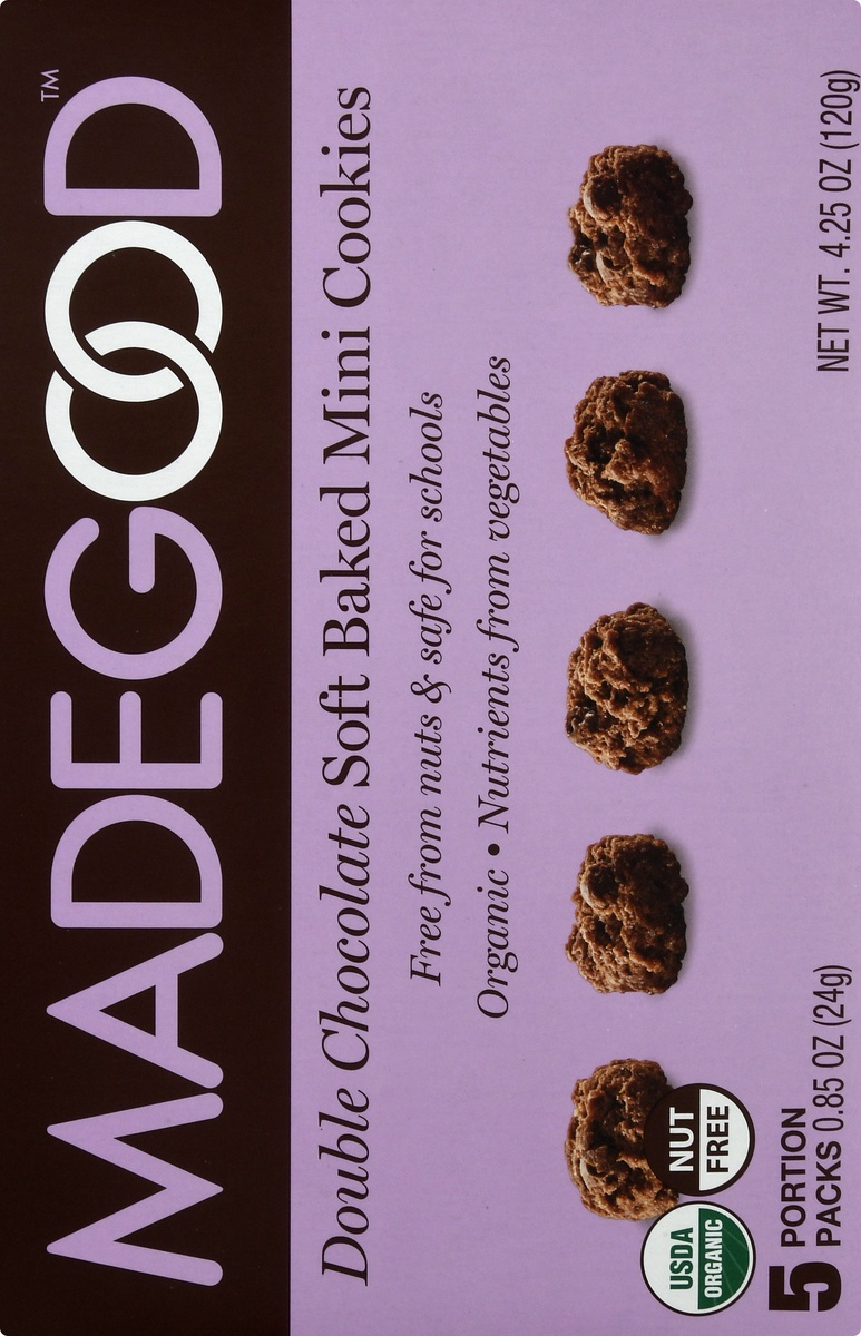 MadeGood Soft Baked Double Chocolate Mini Cookies 5 - 0.85 oz Packs