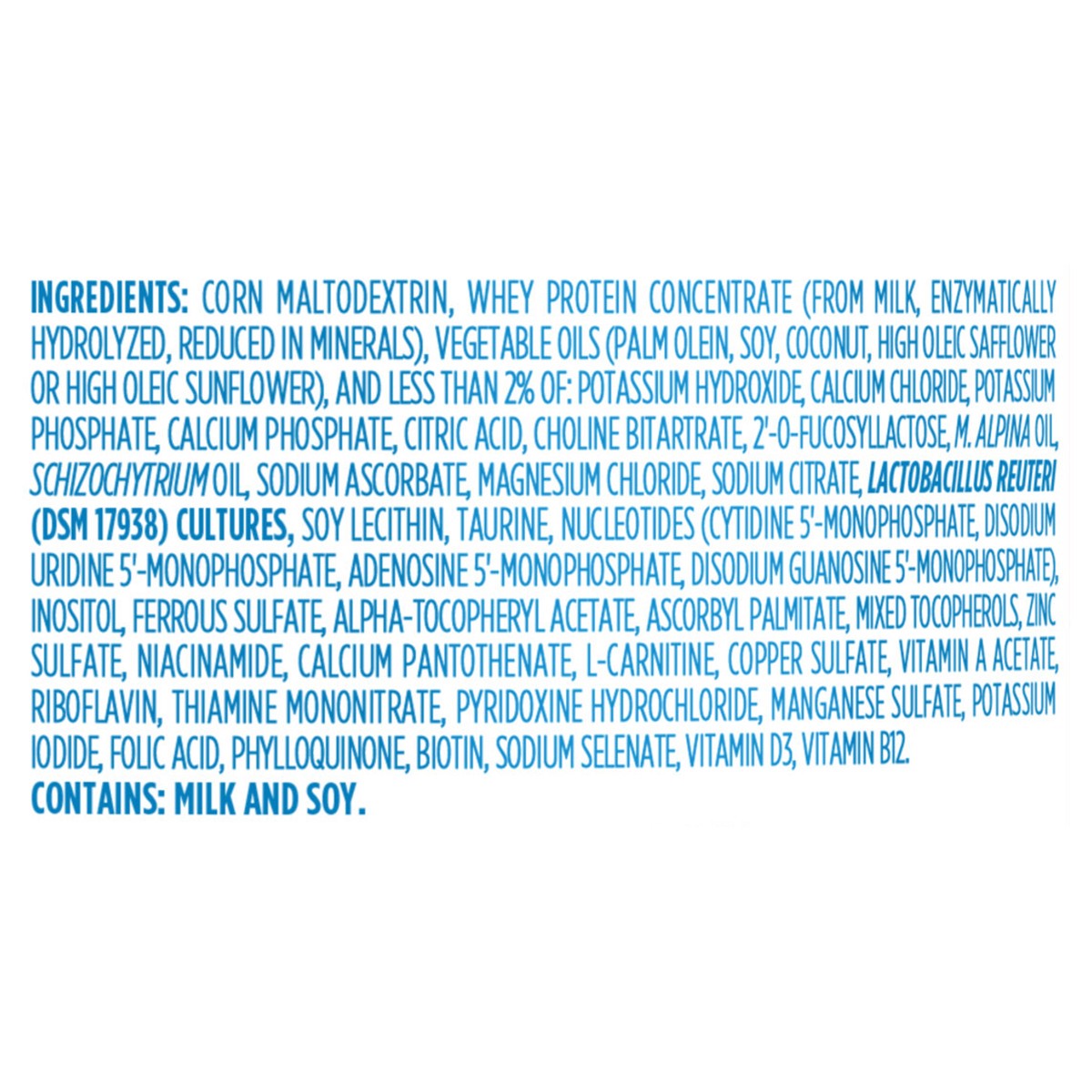 Corn Maltodextrin, Whey Protein Concentrate (from Milk, Enzymatically Hydrolyzed, Reduced in Minerals), Vegetable Oils (Palm Olein, Soy, Coconut, High Oleic Safflower or High Oleic Sunflower), and Les…