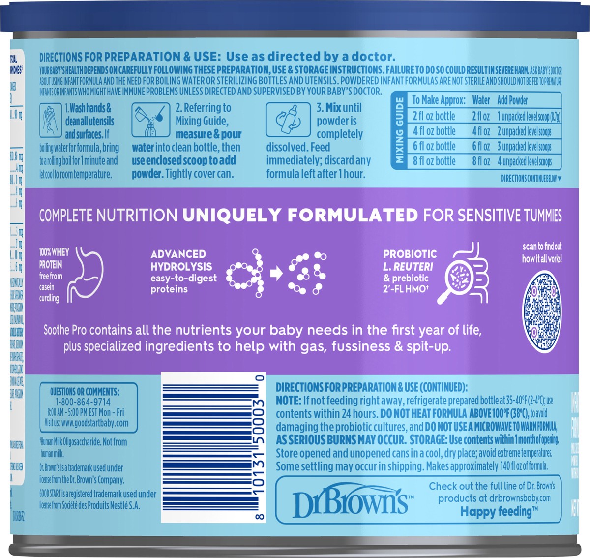 - COMPLETE NUTRITION UNIQUELY FORMULATED FOR SENSITIVE TUMMIES: Good Start | Dr. Brown's Soothe Pro Infant Formula was created to address common feeding issues
