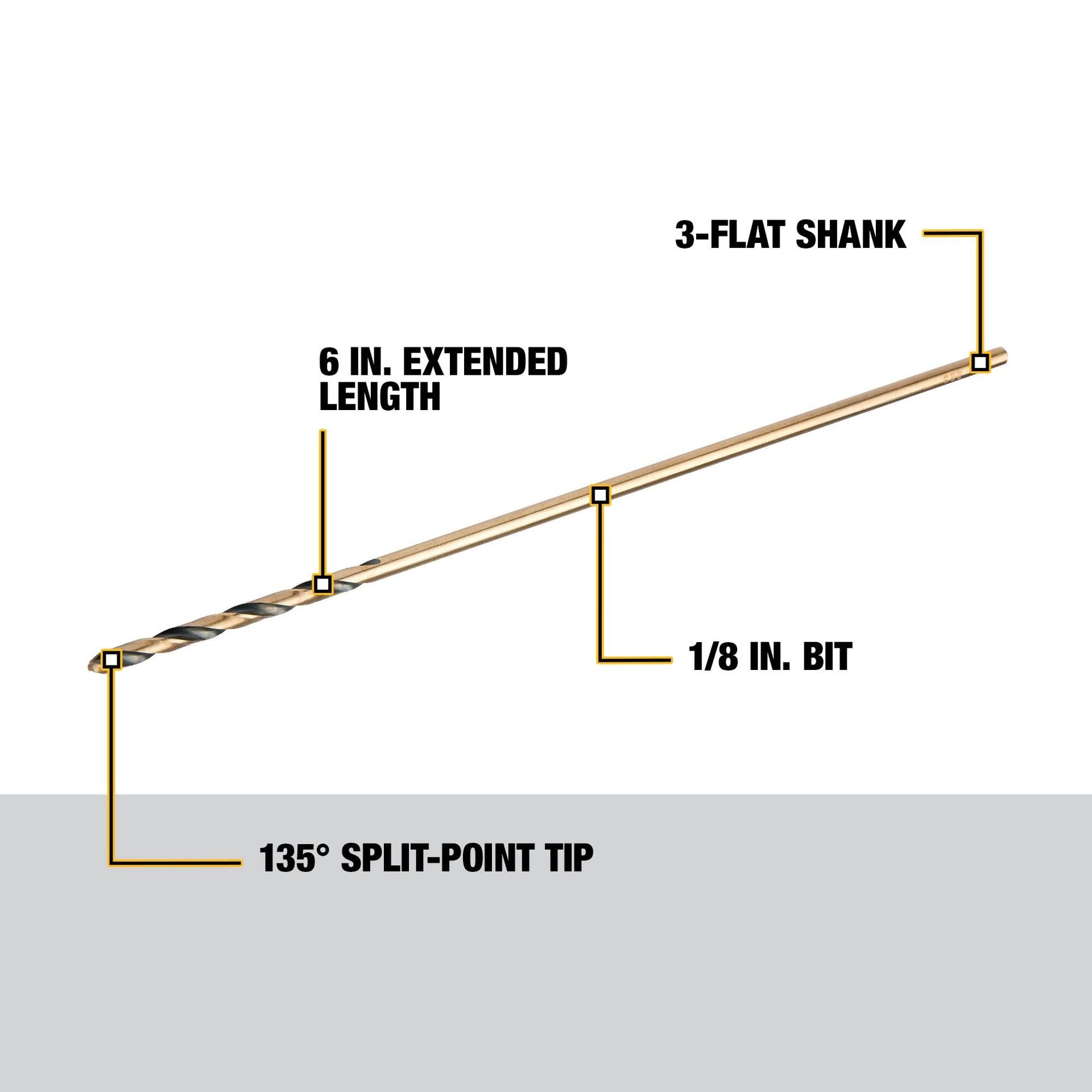 DEWALT 1/8-in x 6-in Black and gold coated HSS Aircraft length Twist Drill Bit