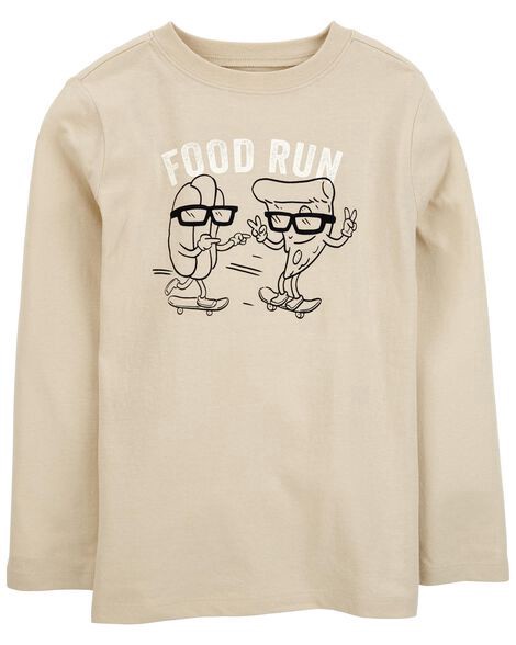 Oshkosh Kid Food Run Long-Sleeve Graphic Tee - Khaki Khaki XS