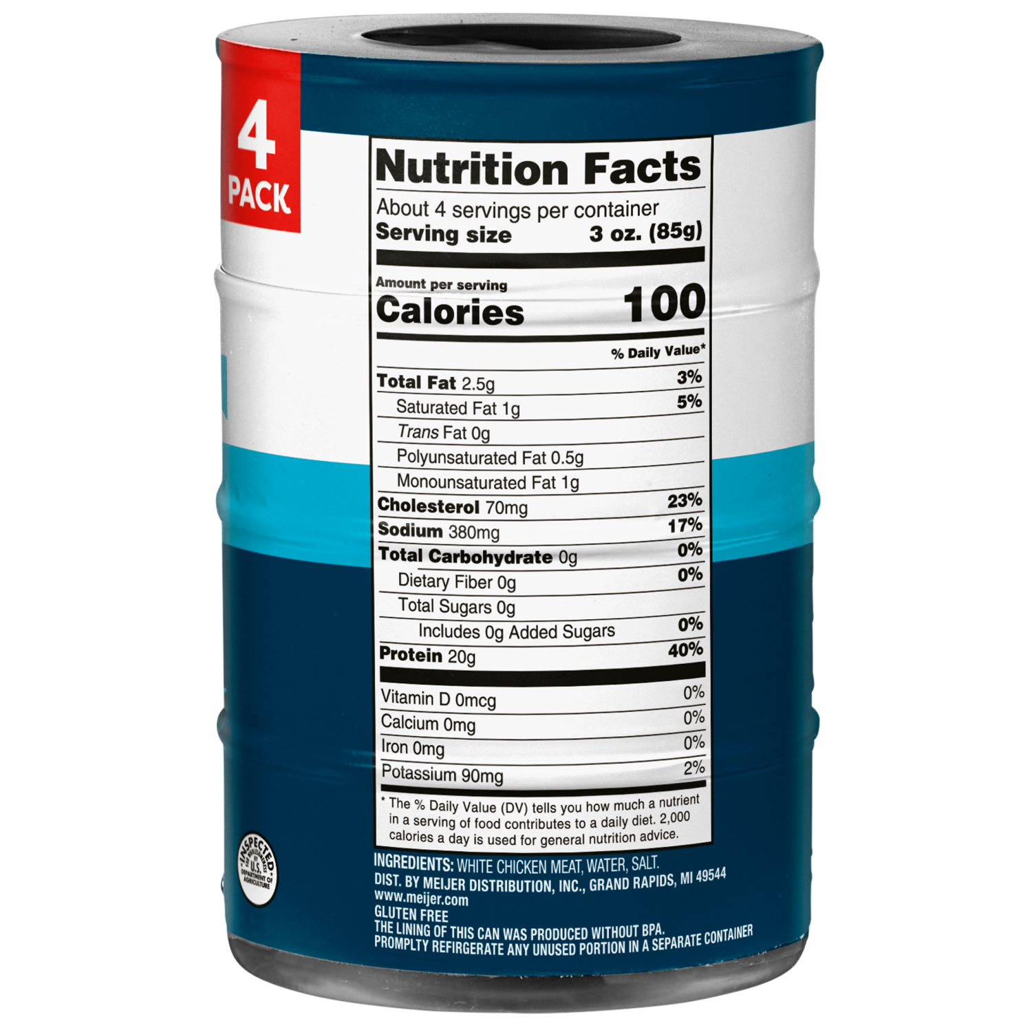 Make mealtime easy with Meijer Chunk Canned White Chicken. From savory salads to a winning game-time dip, this fully-cooked, MSG-free chicken breast is a tender meat the entire family will enjoy. Stac…