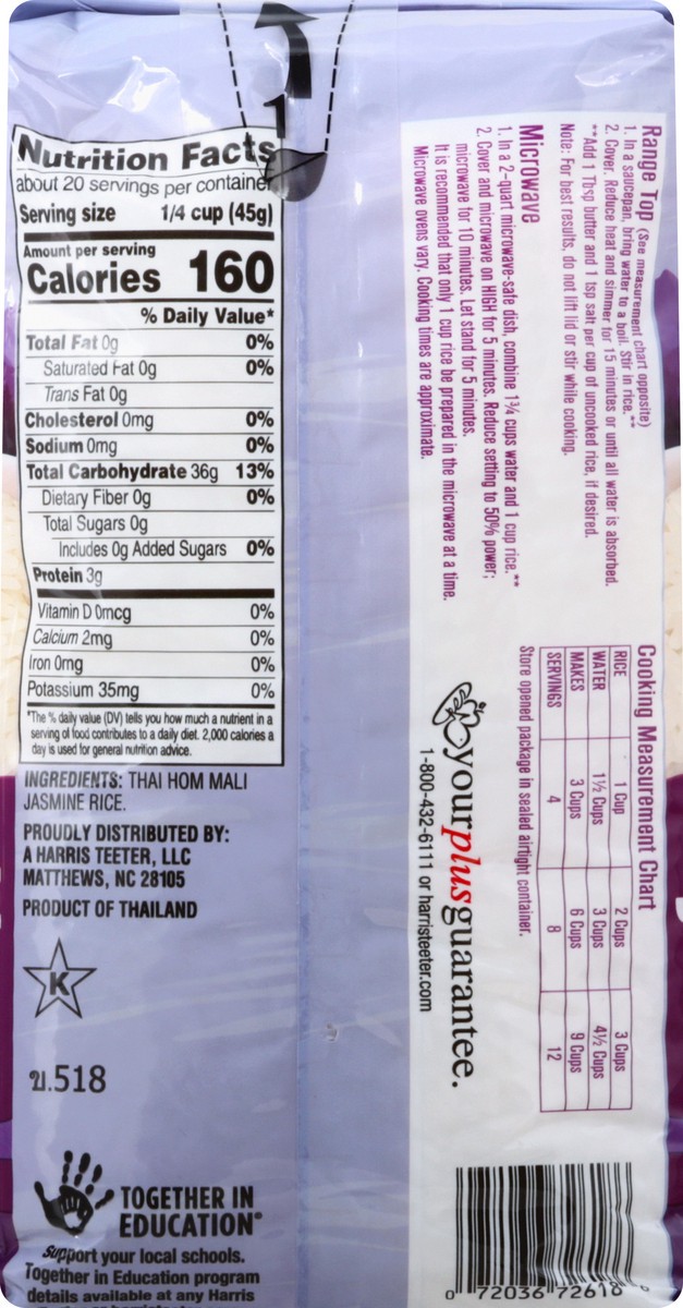 Fragrant long grain rice. Per 1/4 Cup: 160 calories; 0 g sat fat (0% DV); 0 mg sodium (0% DV); 0 g total sugars. Yourplusguarantee. harristeeter.com. Together in education: Support your local schools.…