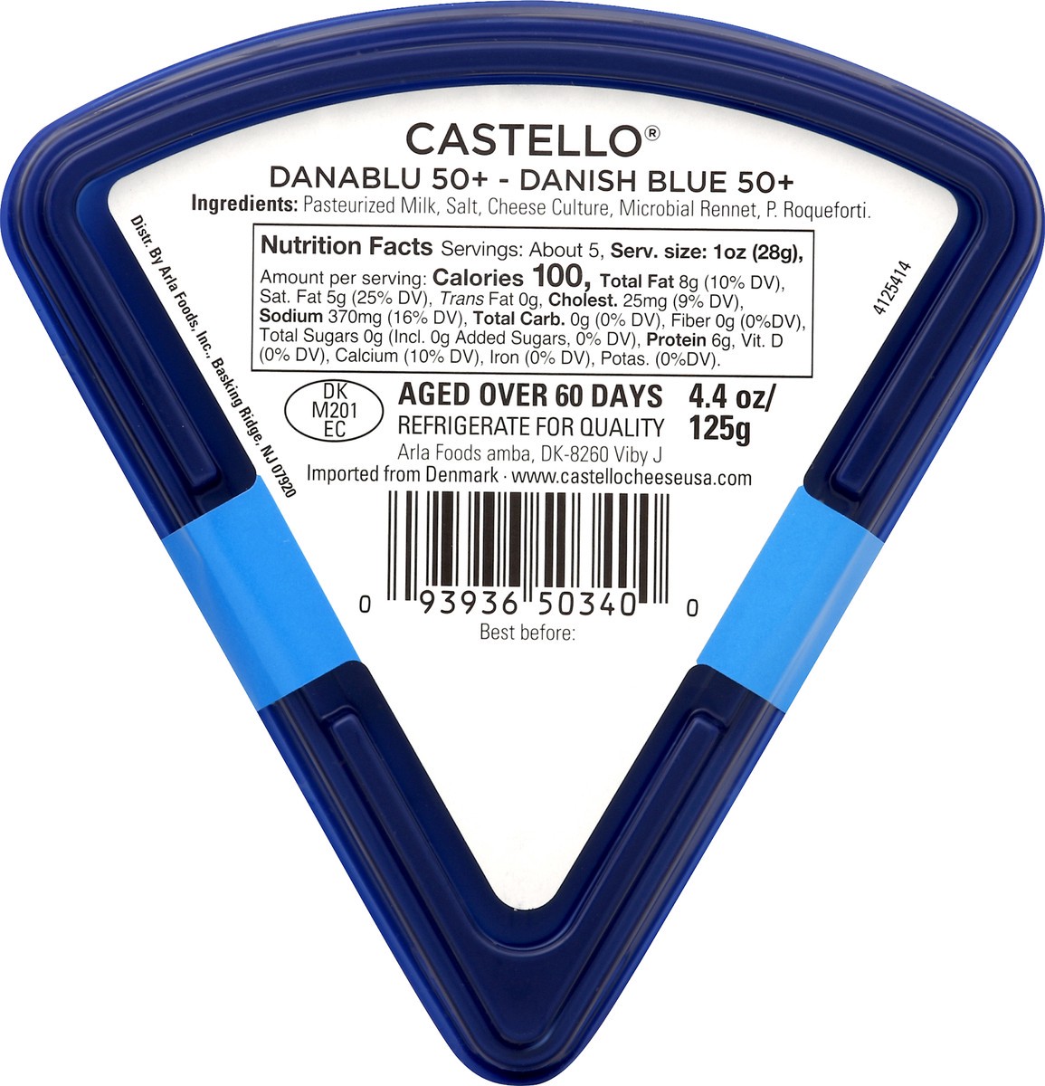 Traditional full flavored salty & sharp. Aged over 69 days. Strength: 6; intense. Since 1893. www.castellocheeseusa.com.