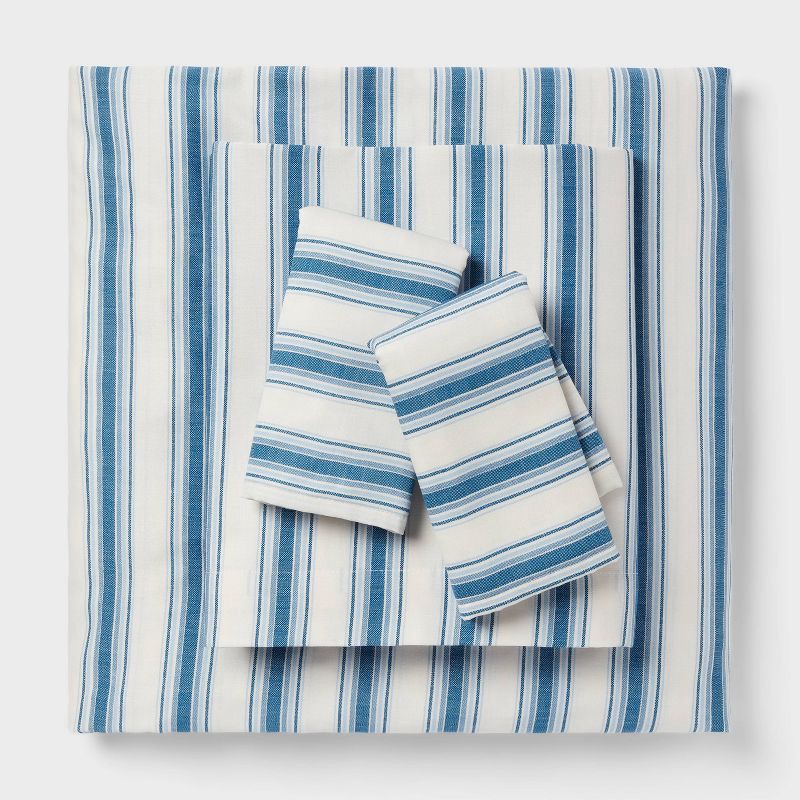 Twin/Twin XL Cotton Blend Sateen Sheet Set Ivory/Navy Textured Stripe - Room Essentials™