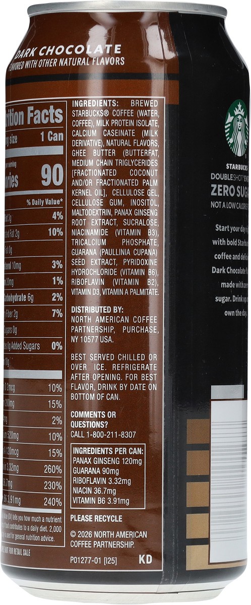 Starbucks Double Shot Zero Sugar Dark Chocolate Flavored Energy Coffee Beverage 15 fl oz