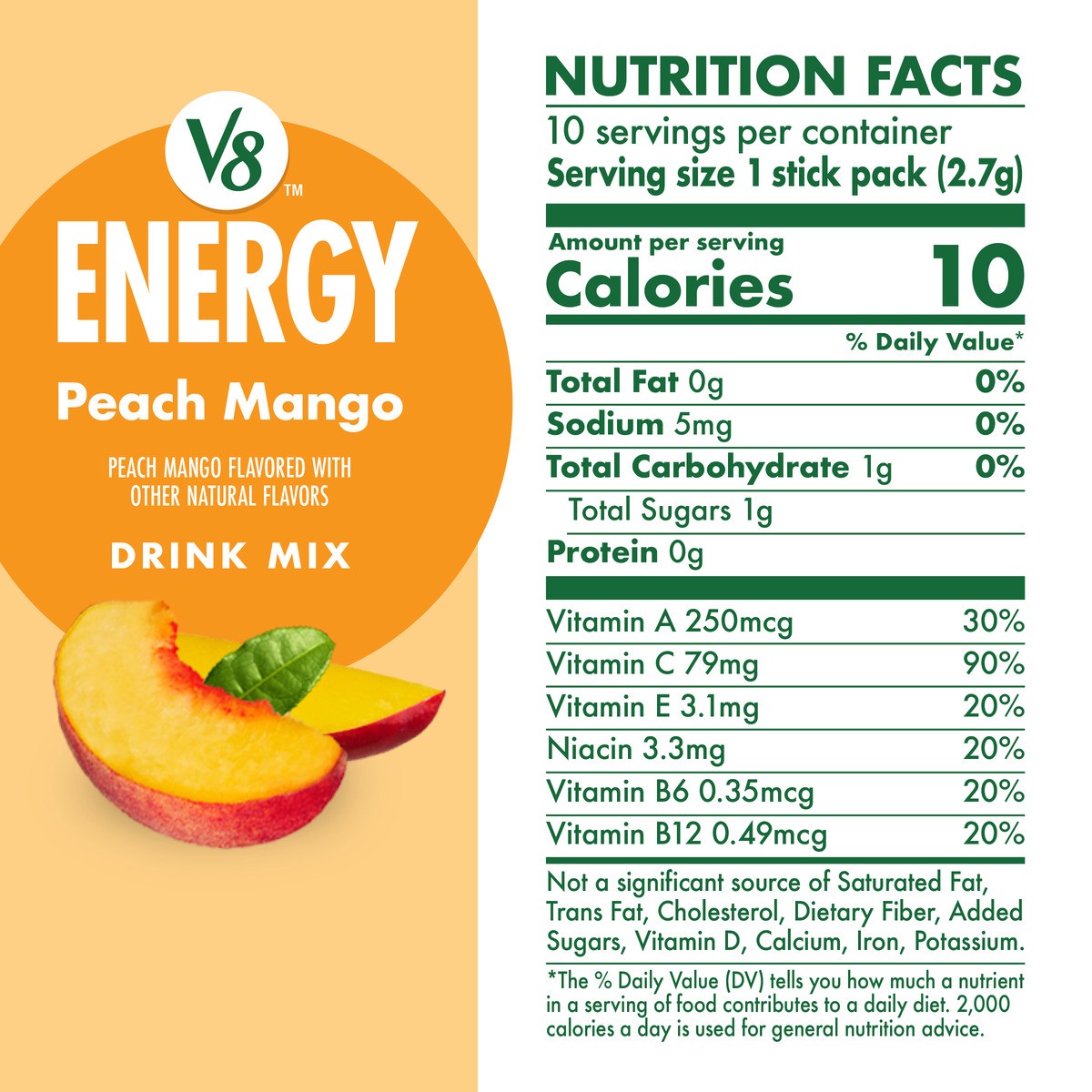 V8 Energy Peach Mango Energy Drink Mix Powder, .10 oz Packet (10 Count)