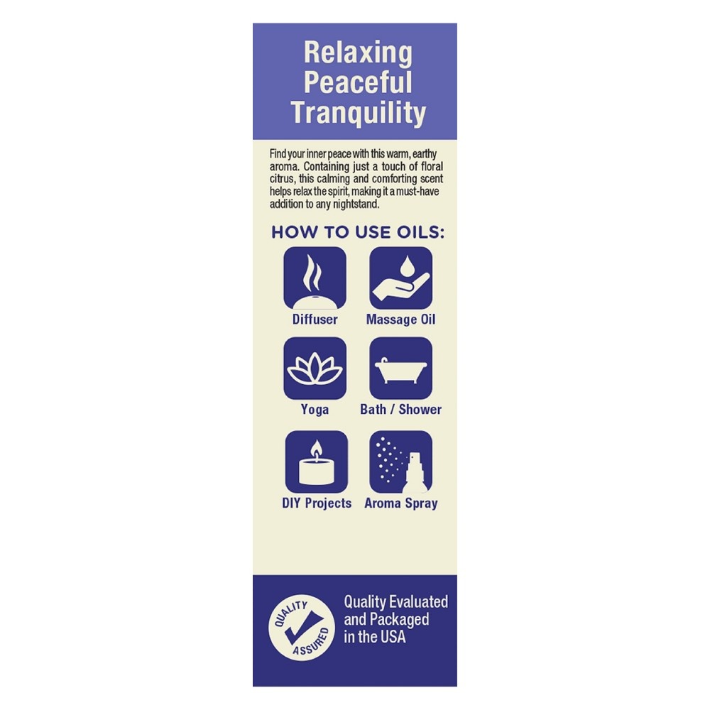 A Blend of Lavender Oil, Tangerine Oil, Bergamot Oil, Cypress Oil, Geranium Oil, Frankincense Oil, and Chamomile Oil.