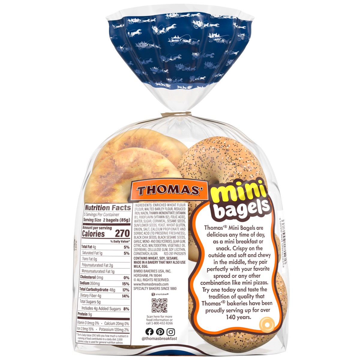 Thomas' Everything Mini Bagels are small in size and big on flavor! These pre sliced bagels are crispy on the outside and soft and chewy in the middle. No matter how you enjoy these flavorful mini bag…