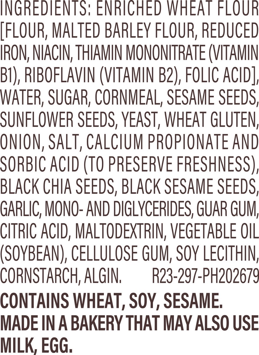 Enriched Wheat Flour [Flour, Malted Barley Flour, Reduced Iron, Niacin, Thiamin Mononitrate (Vitamin B1), Riboflavin (Vitamin B2), Folic Acid], Water, Sugar, Sunflower Seeds, Yeast, Wheat Gluten, Sesa…