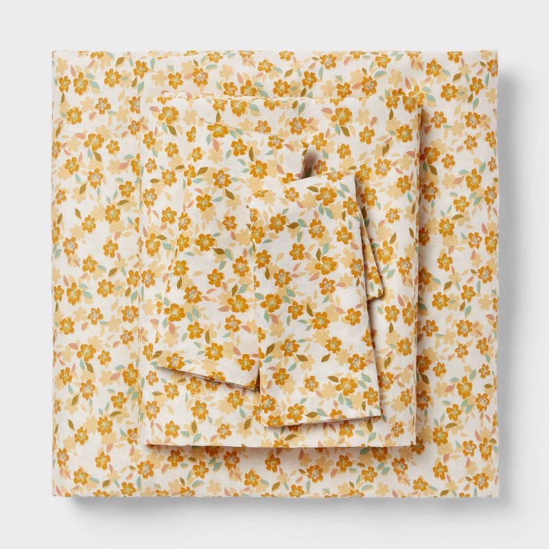 Full Cotton Blend Sateen Sheet Set Yellow Floral - Room Essentials™