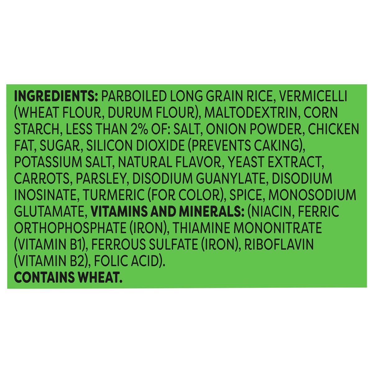 Parboiled Long Grain Rice, Vermicelli (Wheat Flour, Durum Flour), Maltodextrin, Corn Starch, Less than 2% of: Salt, Onion Powder, Chicken Fat, Sugar, Silicon Dioxide (Prevents Caking), Potassium Salt,…