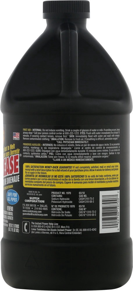 Brand Name: Instant PowerSub Brand: Hair & GreaseProduct Form: LiquidProduct Type: Drain OpenerContainer Size: 67.63 oz.Protects Pipes from Corrosion: YesSafe for Garbage Disposals: No