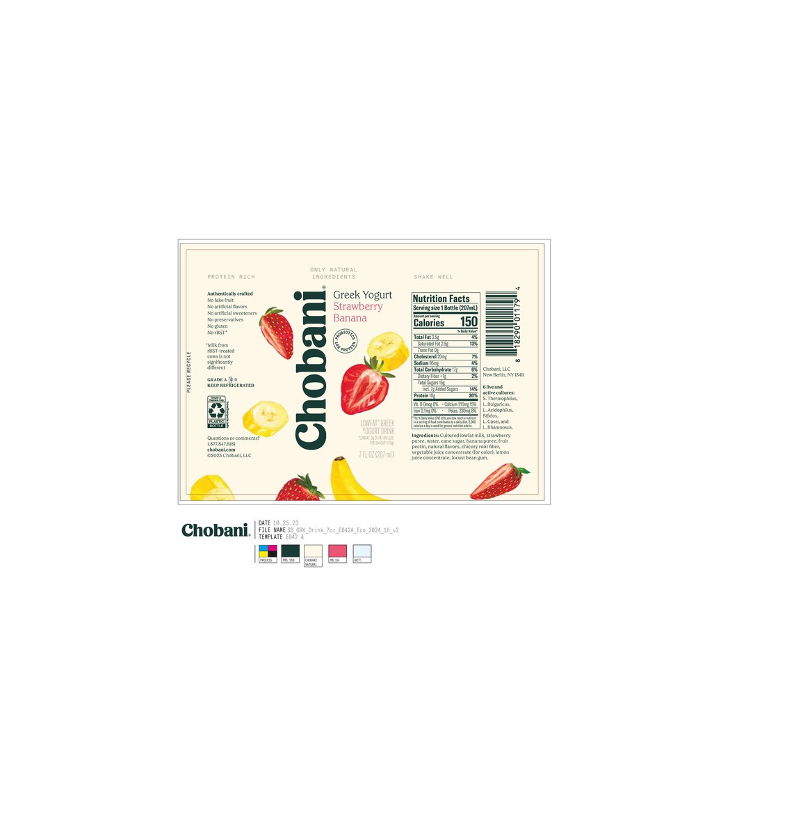 Cultured Lowfat Milk, Strawberry Puree, Water, Cane Sugar, Banana Puree, Fruit Pectin, Natural Flavors, Chicory Root Fiber, Vegetable Juice Concentrate (for Color), Lemon Juice Concentrate, Locust Bea…