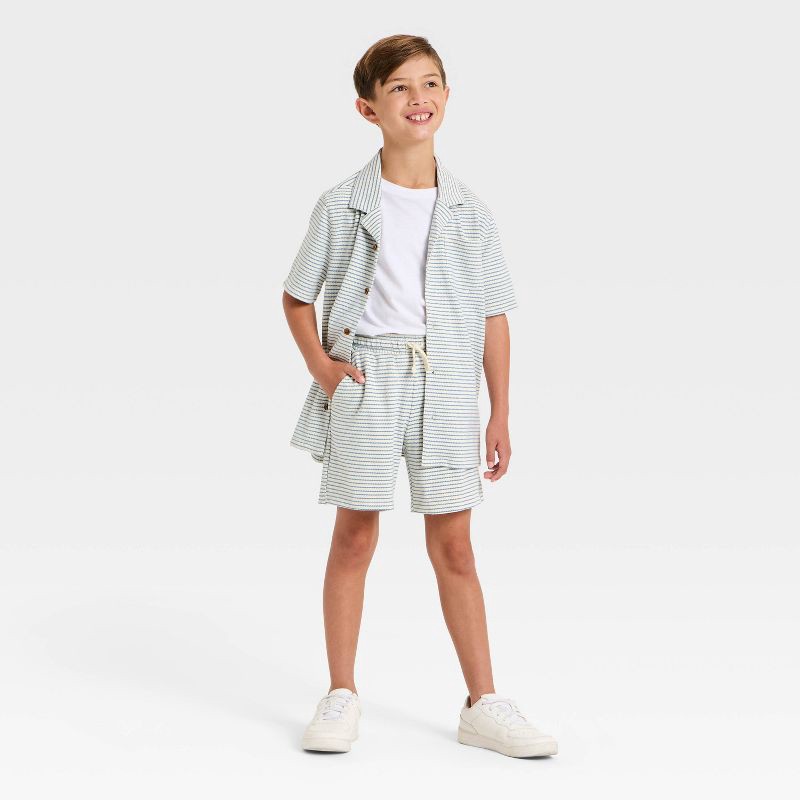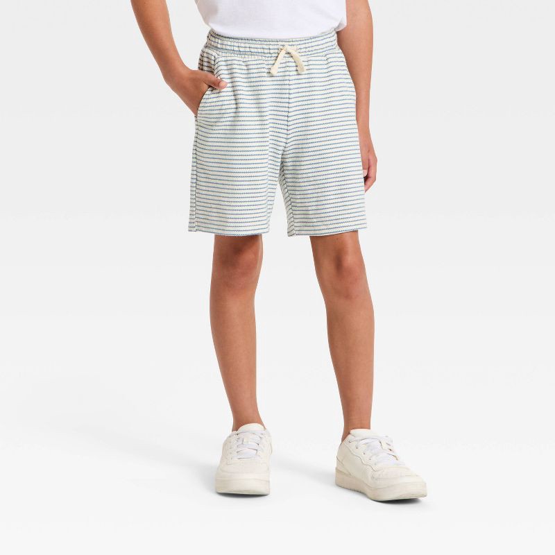 Boys' 'At the Knee' Striped Knit Pull-On Shorts - Cat & Jack™ White L