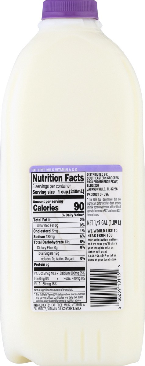 Fat Free Milk, Vitamin A Palmitate, Vitamin D3.