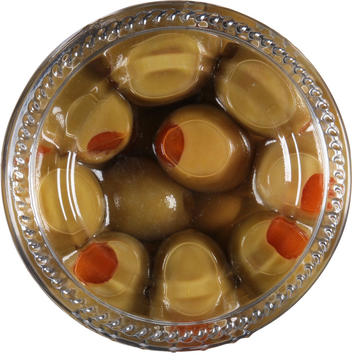 Olives, Water, Minced Pimiento (Water, Pimiento, Sodium Alginate, Guar Gum, Calcium Chloride, Potassium Sorbate as a Preservative), Salt, and Lactic Acid.