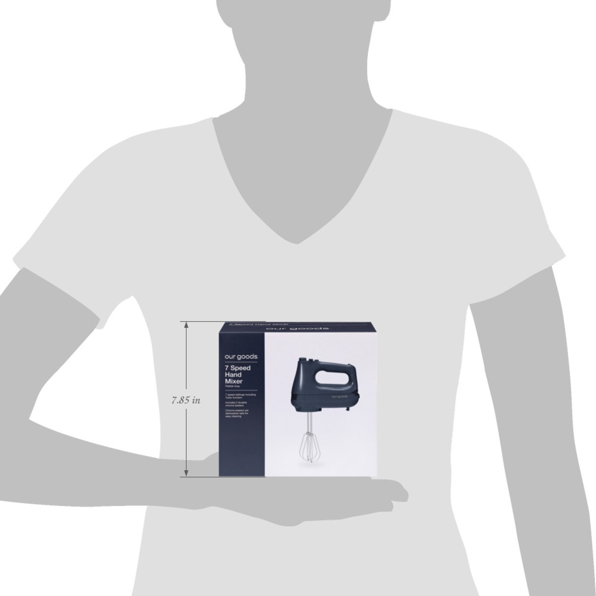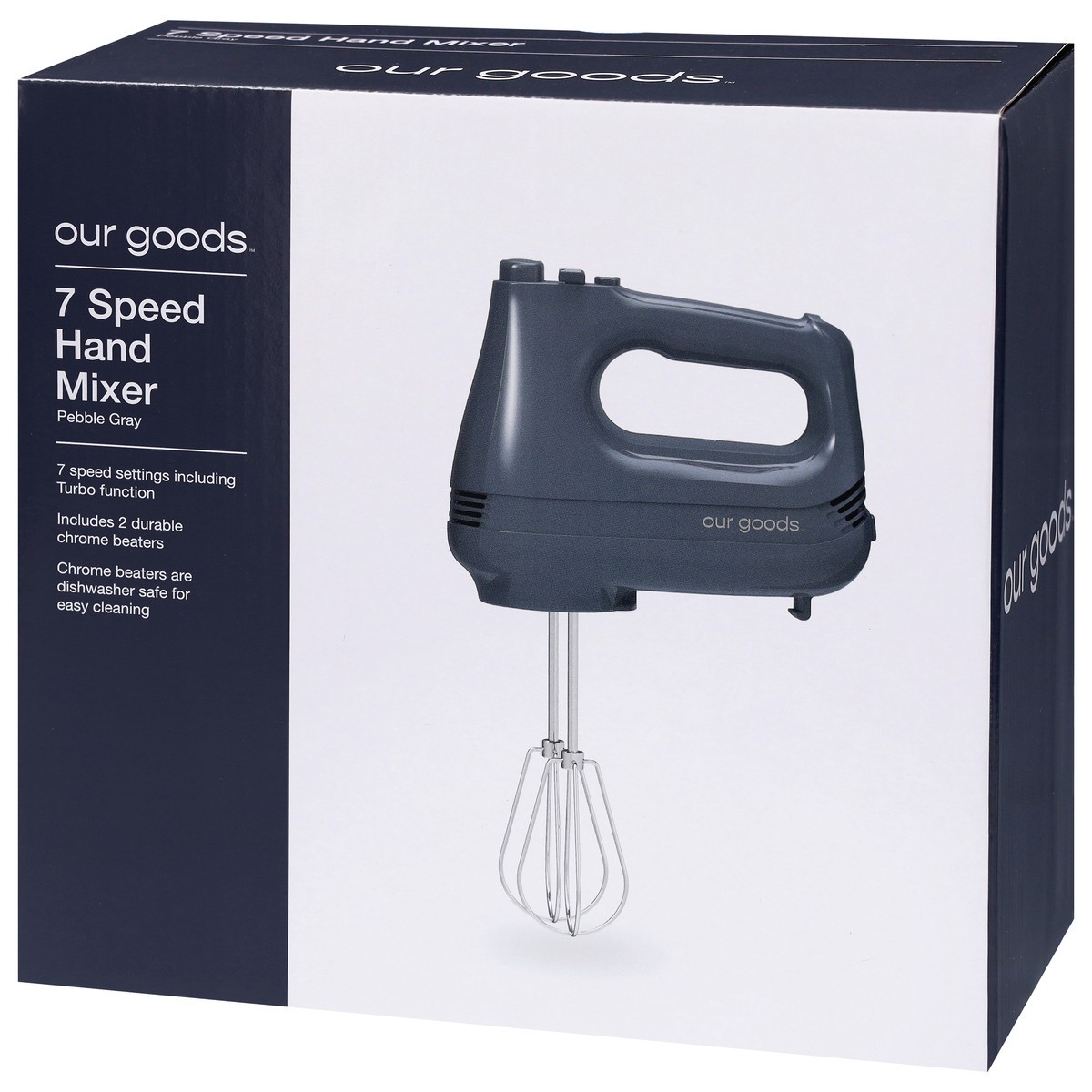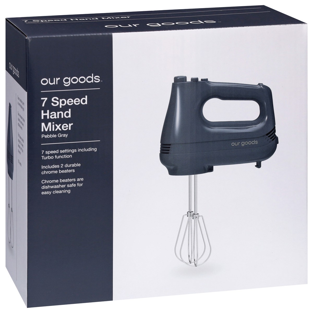 • 7 Speed setting including Turbo function • Includes 2 durable chrome beaters • Chrome beaters are dishwasher safe for easy cleaning • Color: Pebble Gray