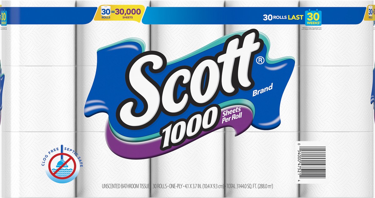 As America’s #1 toilet paper*, Scott 1000 helps you spend time on what matters most. Each roll of Scott 1000 bath tissue has 1000 sheets, resulting in fewer roll changes** and making it last 2x longer…