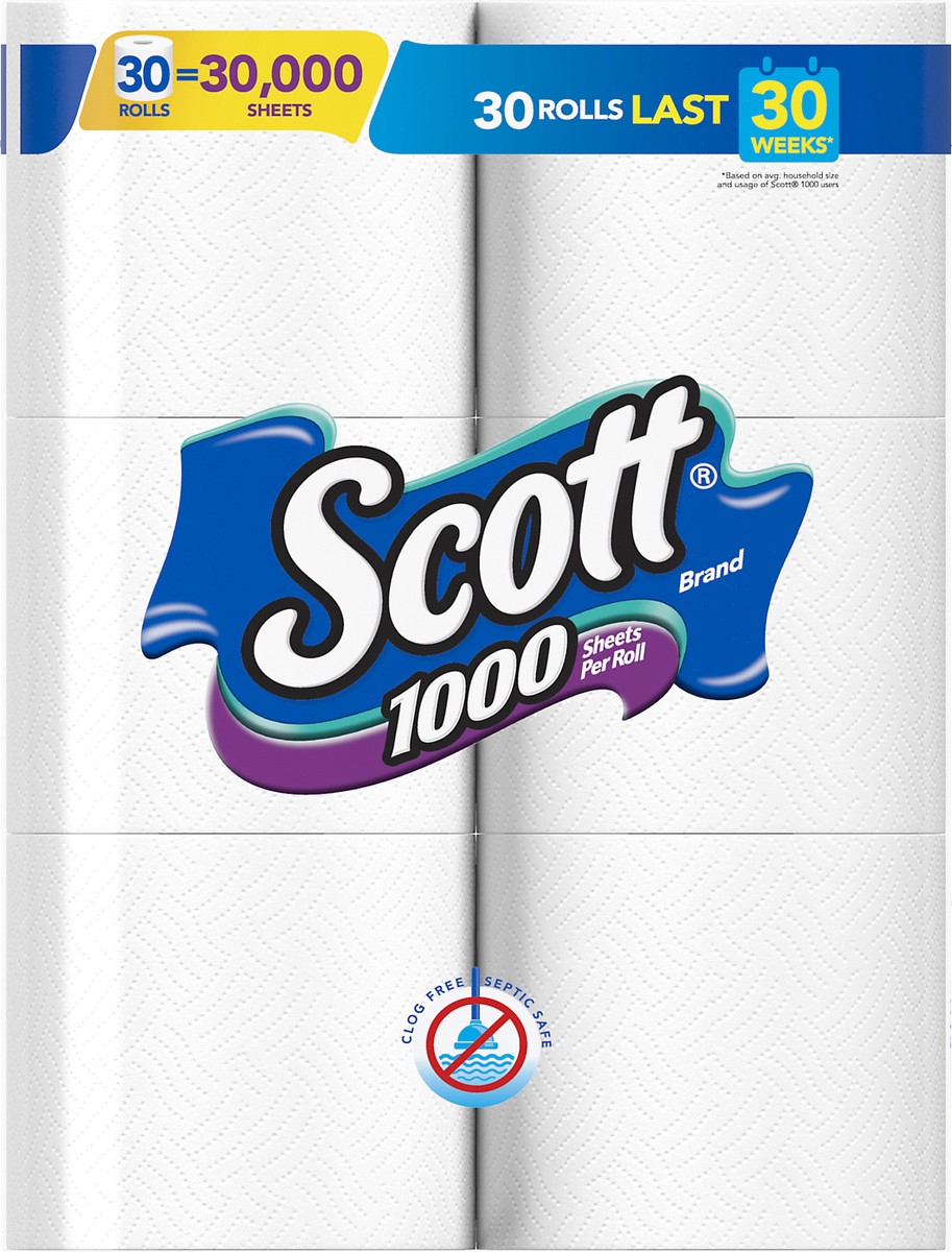 Scott 1000 Toilet Paper, 30 Rolls, Septic-Safe, 1-Ply Toilet Tissue