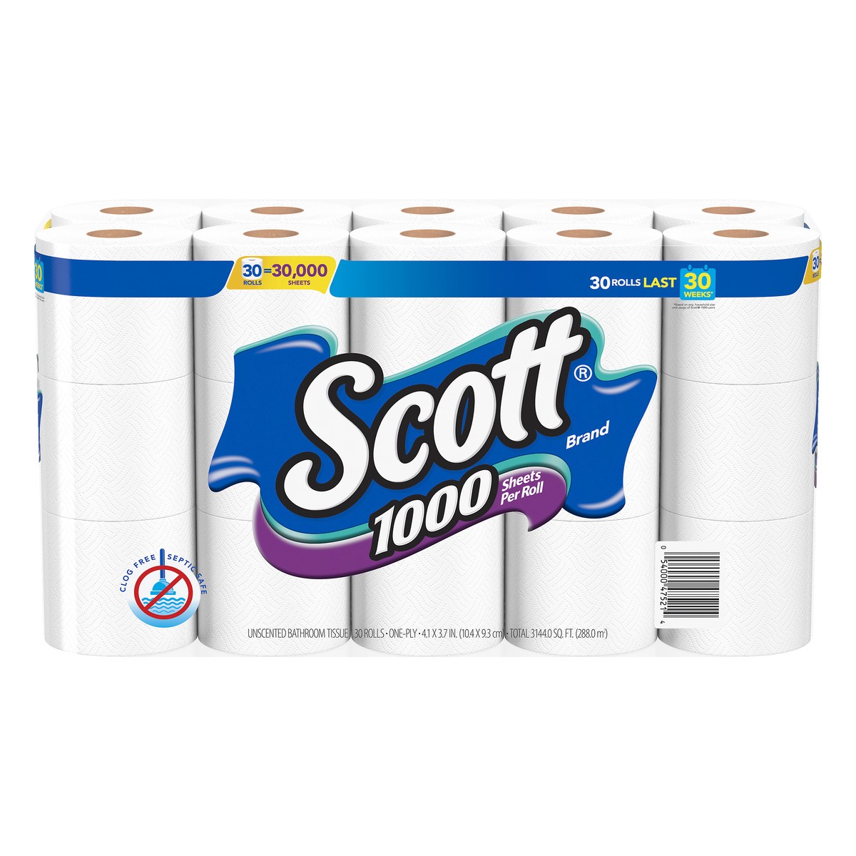 - Clog-Free Technology: Scott 1-ply toilet paper is made with clog-free technology