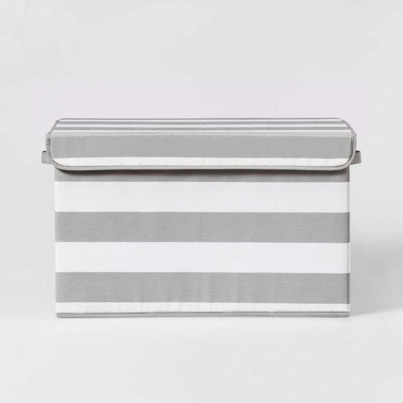 Large Rectangle Kids' Storage Striped Bin Gray - Pillowfort™