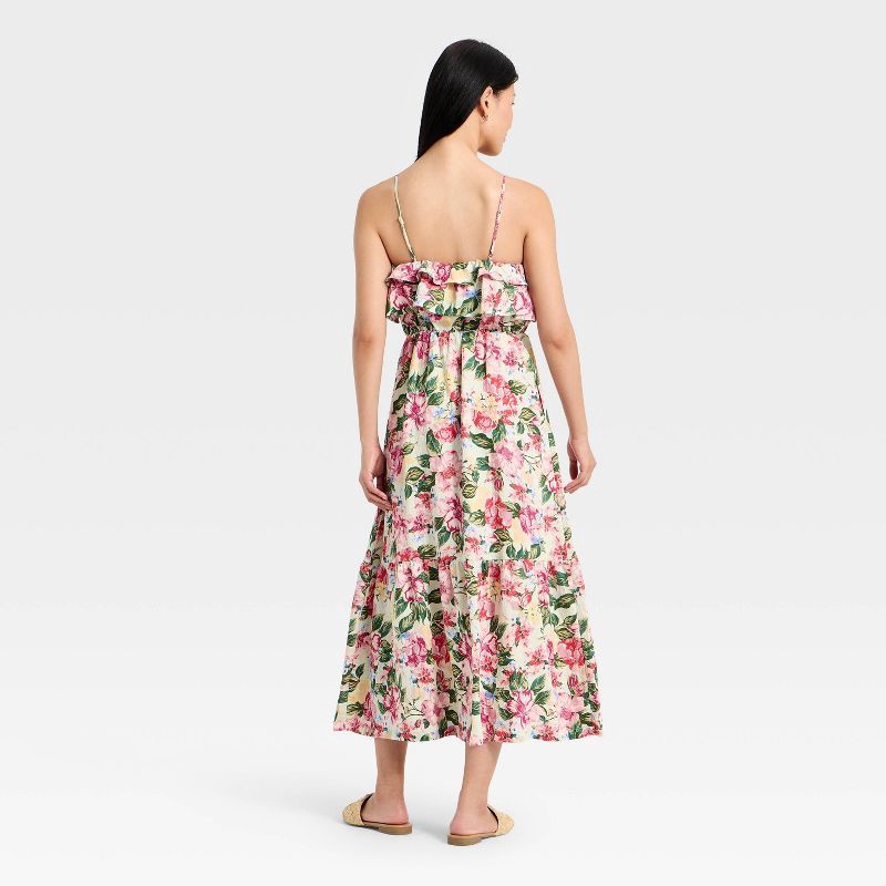 Women's Sleeveless Ruffle Maxi A-Line Dress - A New Day™ Pink Floral XL