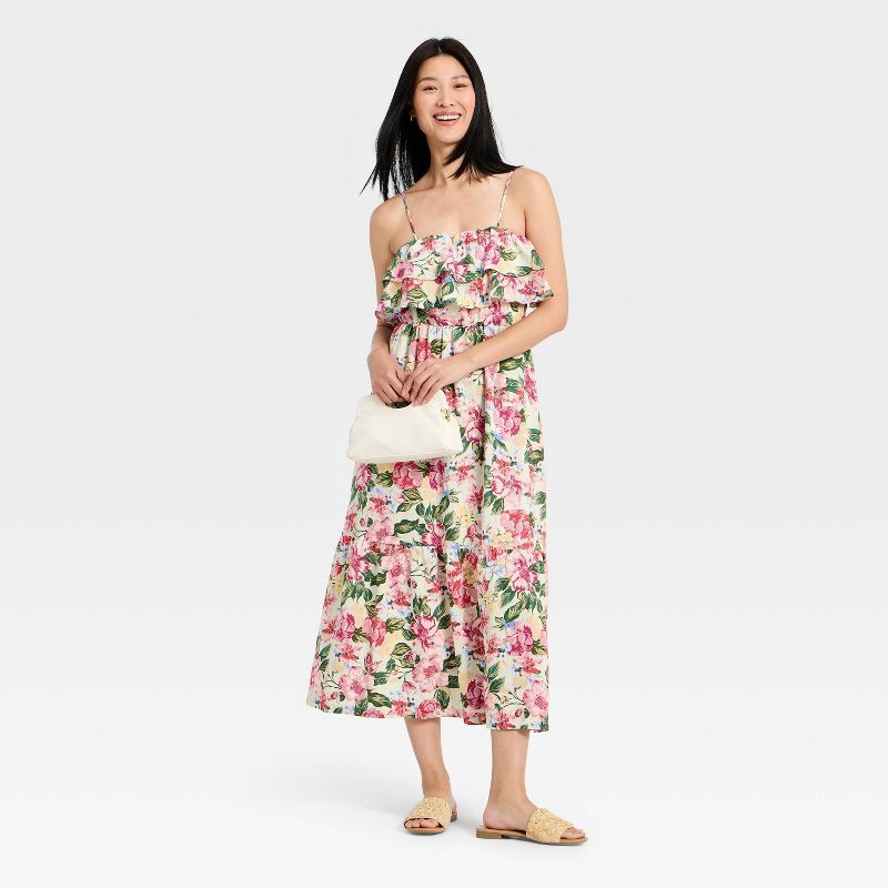 From casual hangouts to dinner dates, this Ruffle Maxi A-Line Dress from A New Day™ is a perfect choice for any occasion. Made from a mix of lyocell, viscose and nylon fabric, this maxi A-line dress o…